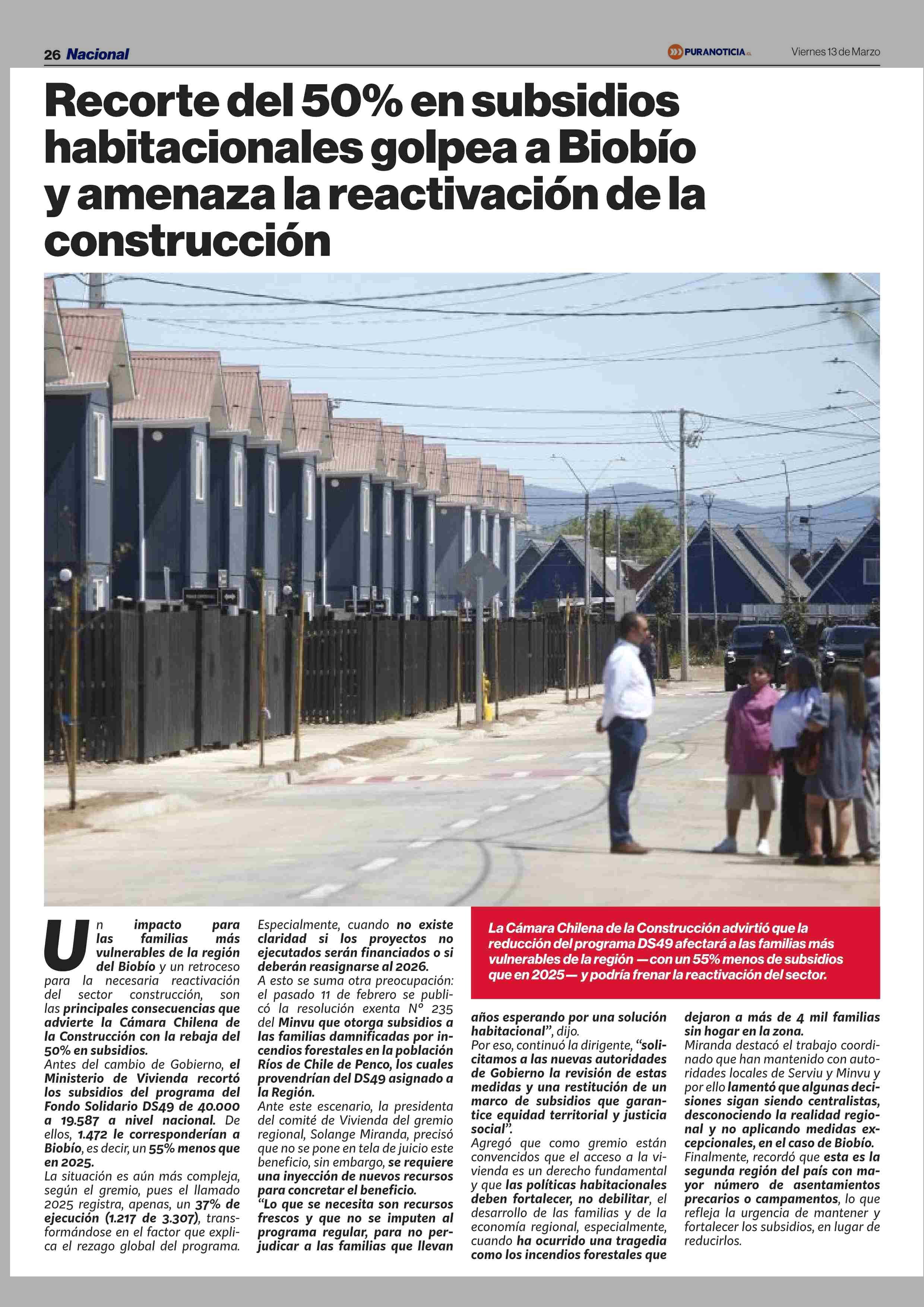 Título: Recorte del 50% en subsidios habitacionales golpea a Biobio y amenaza la reactivación de la construcción