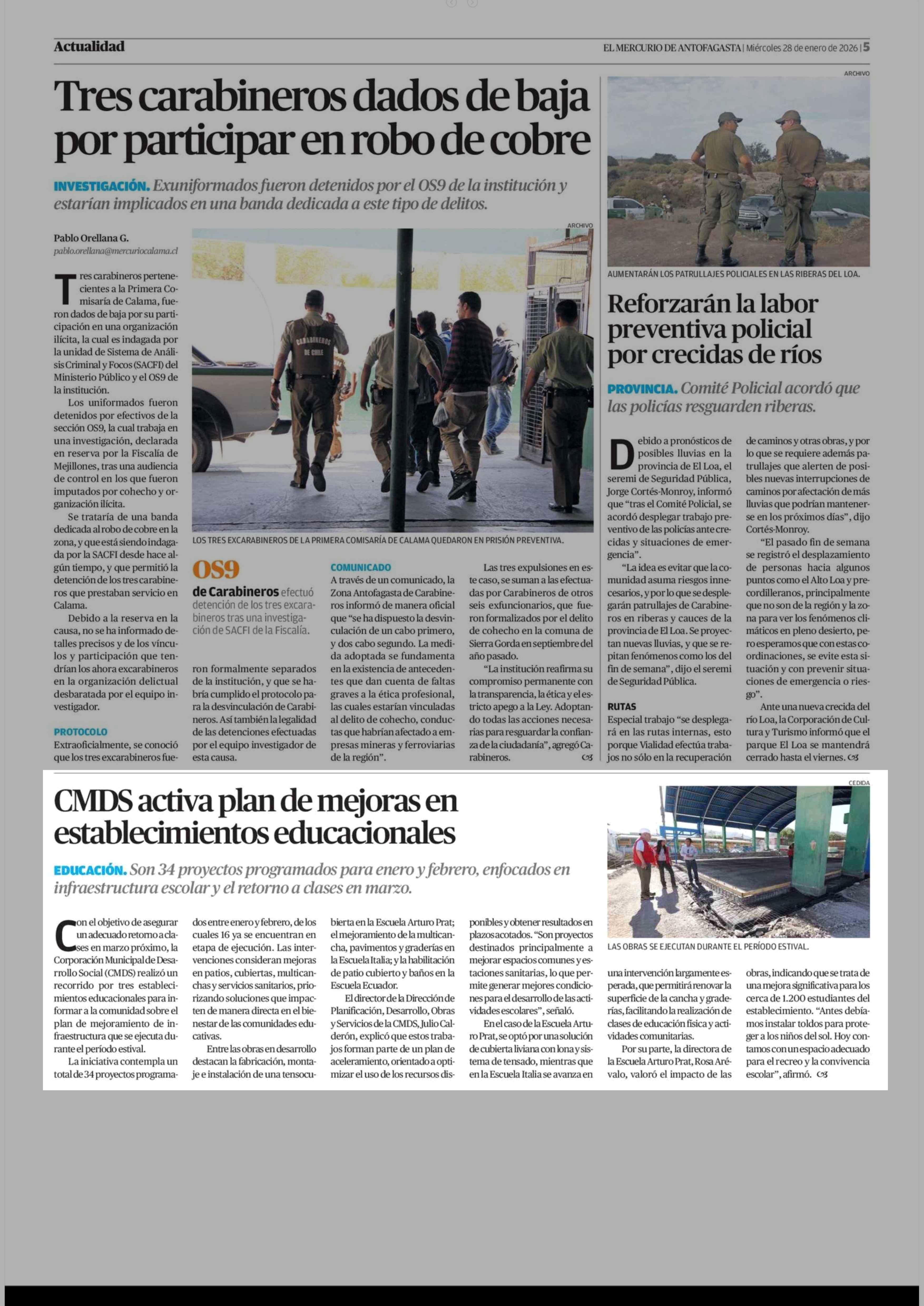 CMDS activa plan de mejoras en establecimientos educacionales 28-01-2026 El Mercurio de Antofagasta |