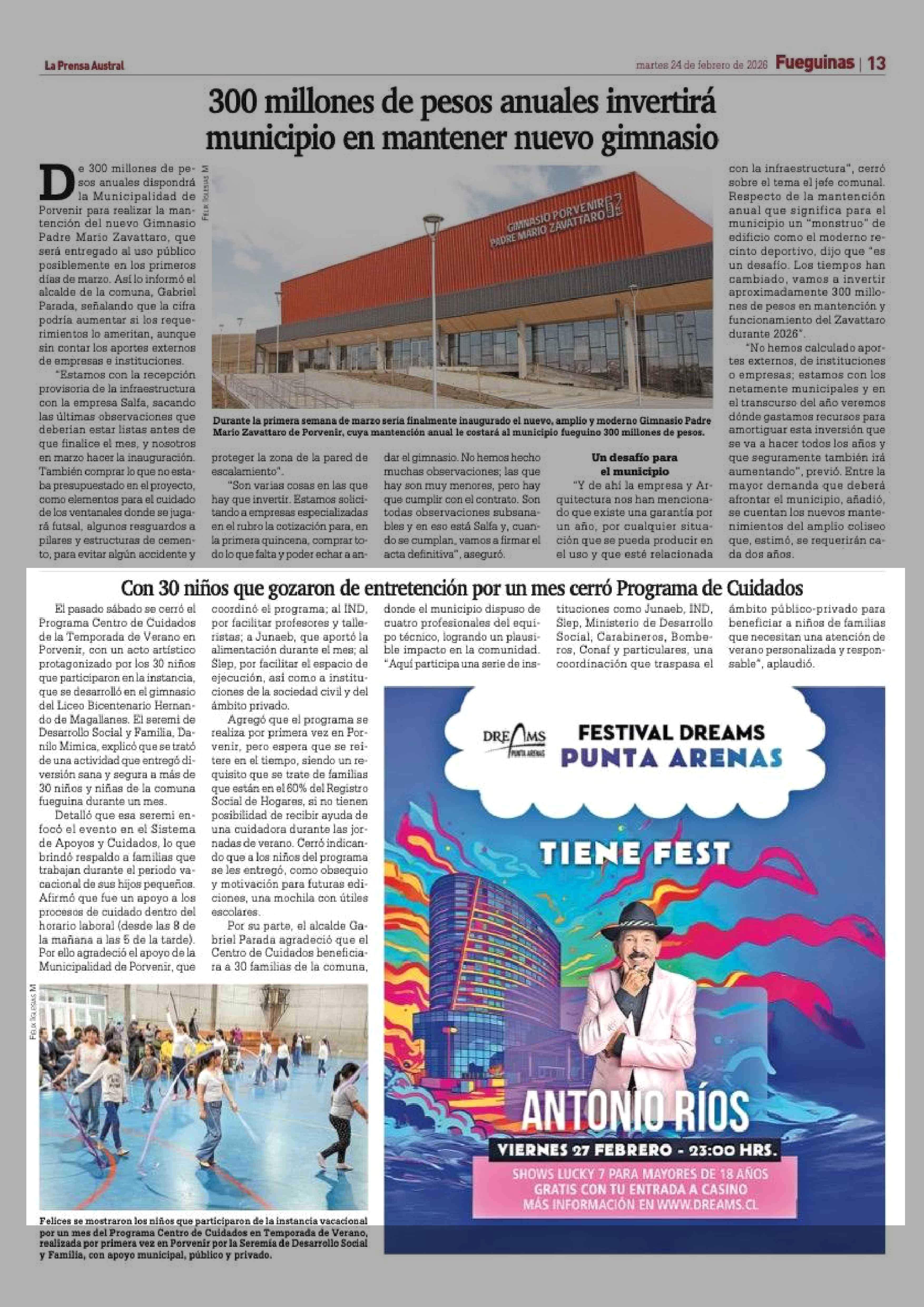 Fecha: 24-02-2026 Sector: Noticia general Región: Región de Magallanes y de la Antártica Chilena