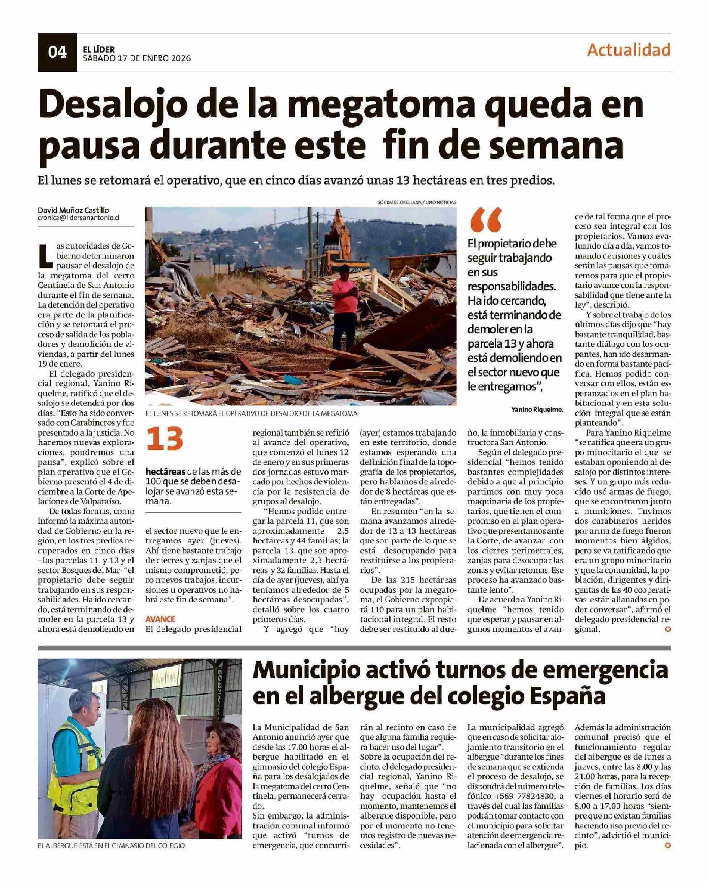 Título: Desalojo de la megatoma queda en pausa durante este fin de semana