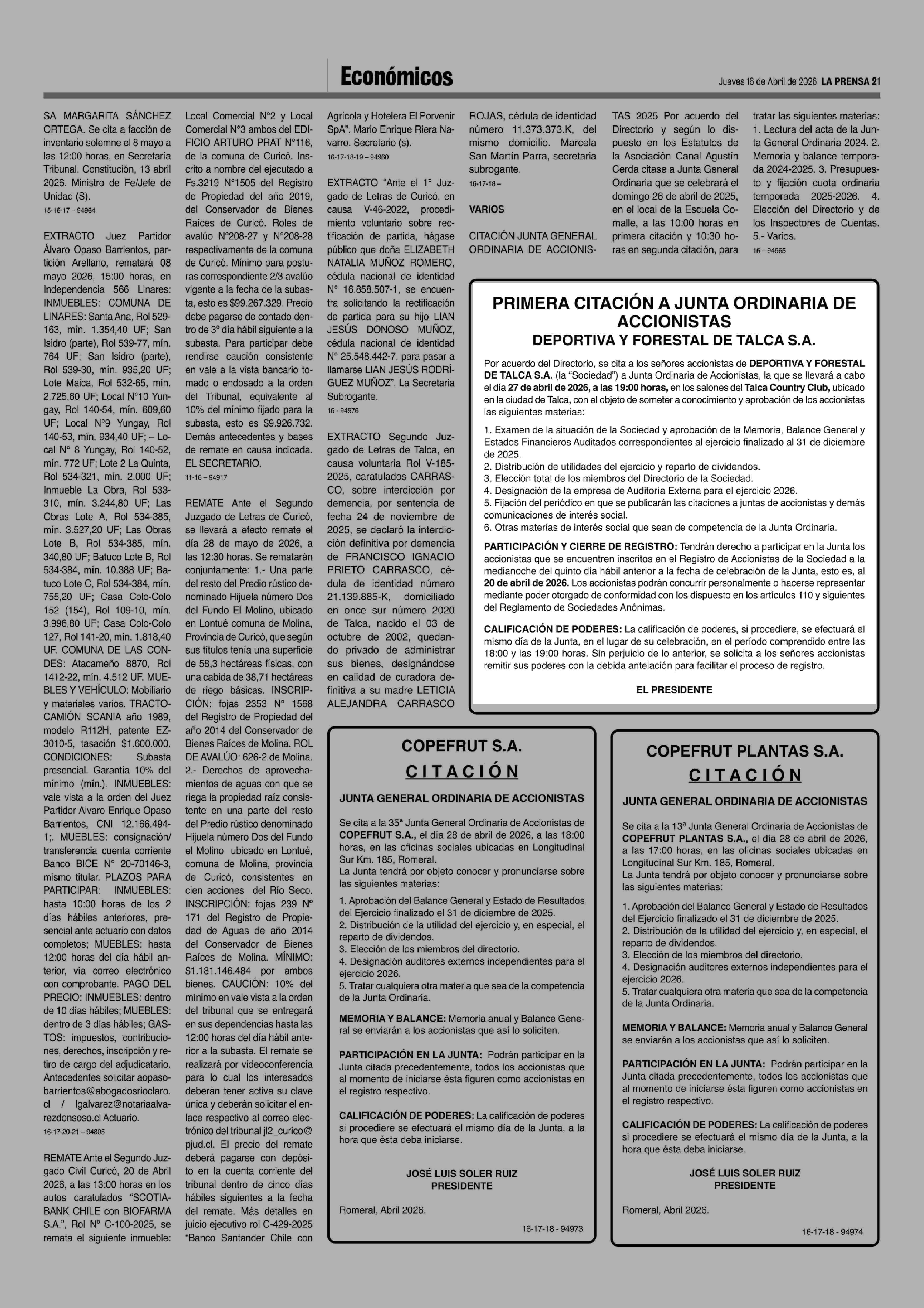 16-04-2026 La Prensa de Curicó