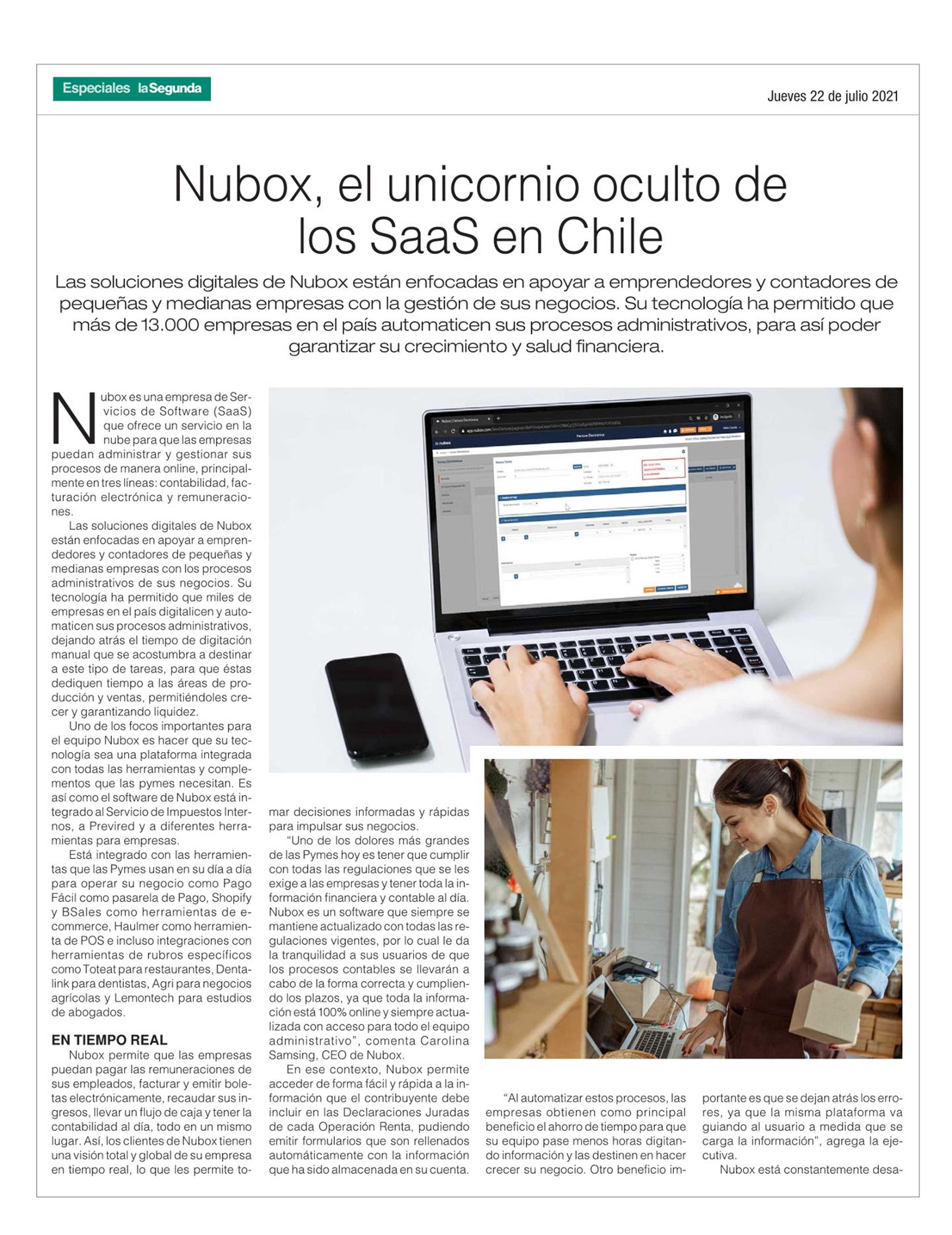 Nubox, el unicornio oculto de los SaaS en Chile 22-07-2021 La Segunda |
