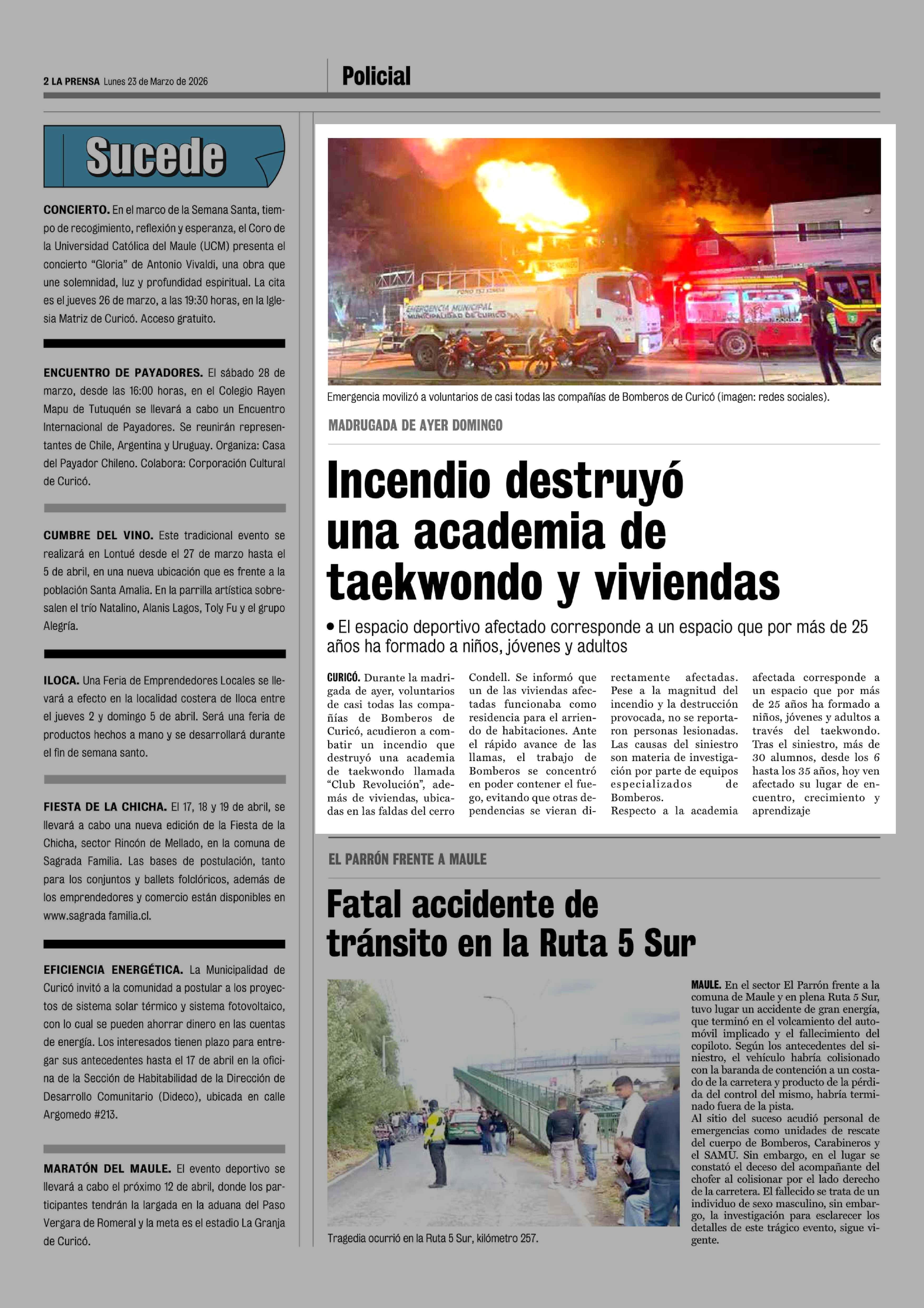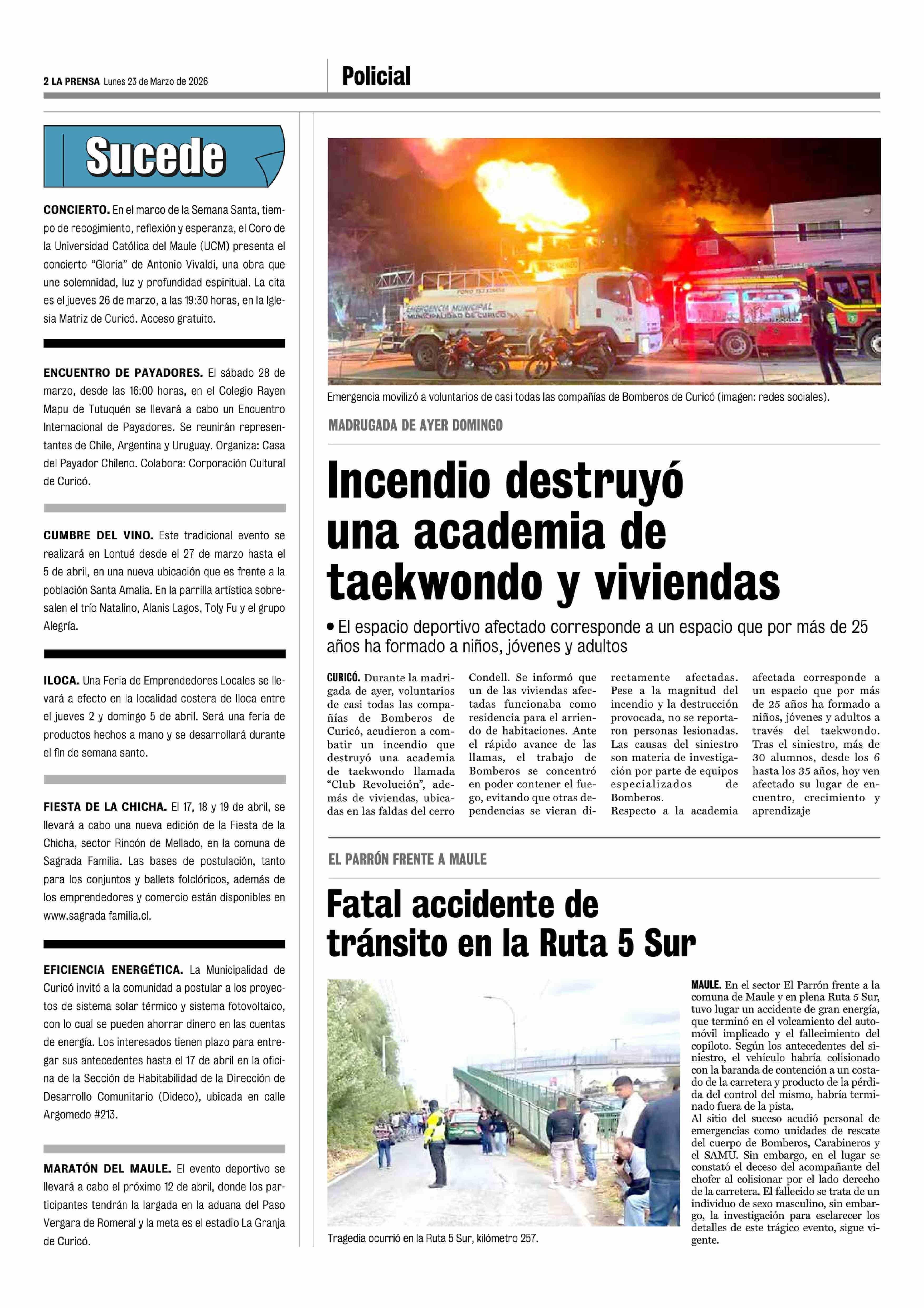 Fecha: 23-03-2026 Sector: Noticia general Región: Región del Maule