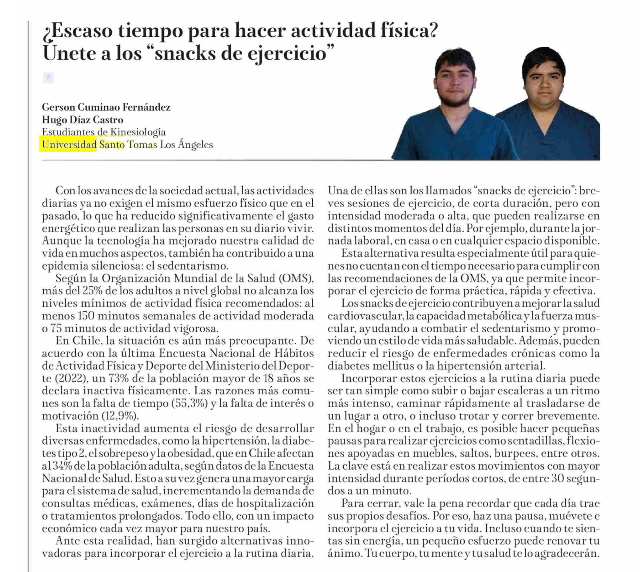 | Título: | ¿Escaso tiempo para hacer actividad física? Unete a los snacks de ejercicio |