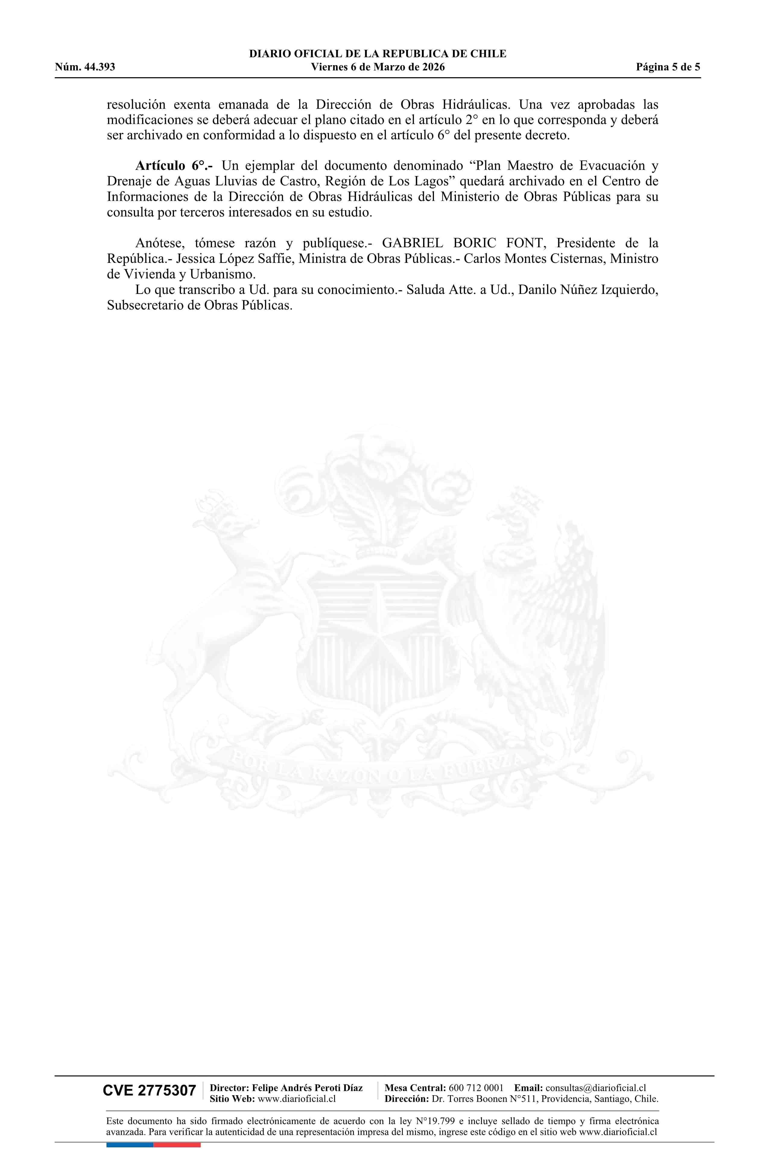 Título: Decreto número 105, de 2025.- Aprueba Plan Maestro de Evacuación y Drenaje de Aguas Lluvia de Castro, Región de Los Lagos