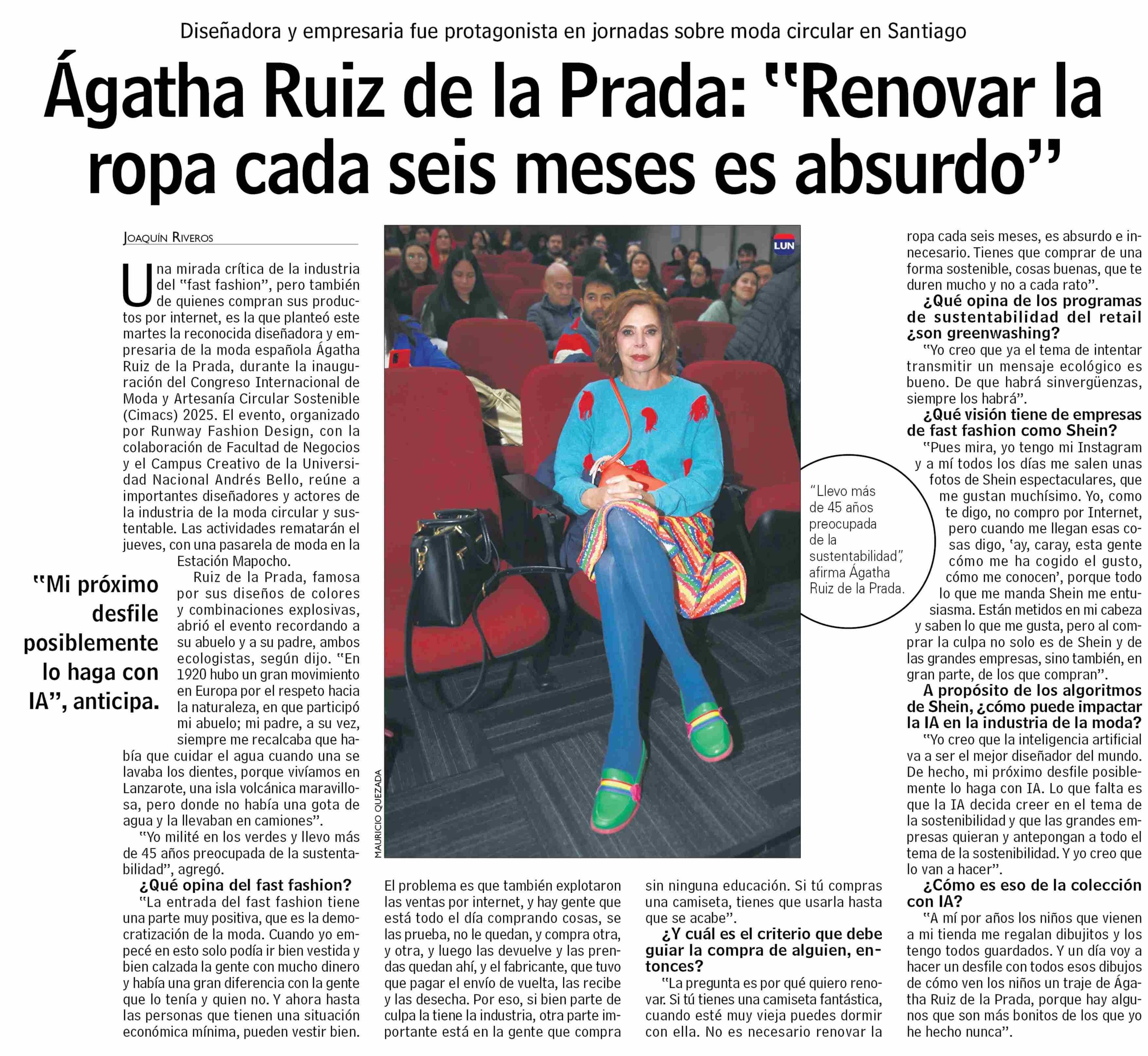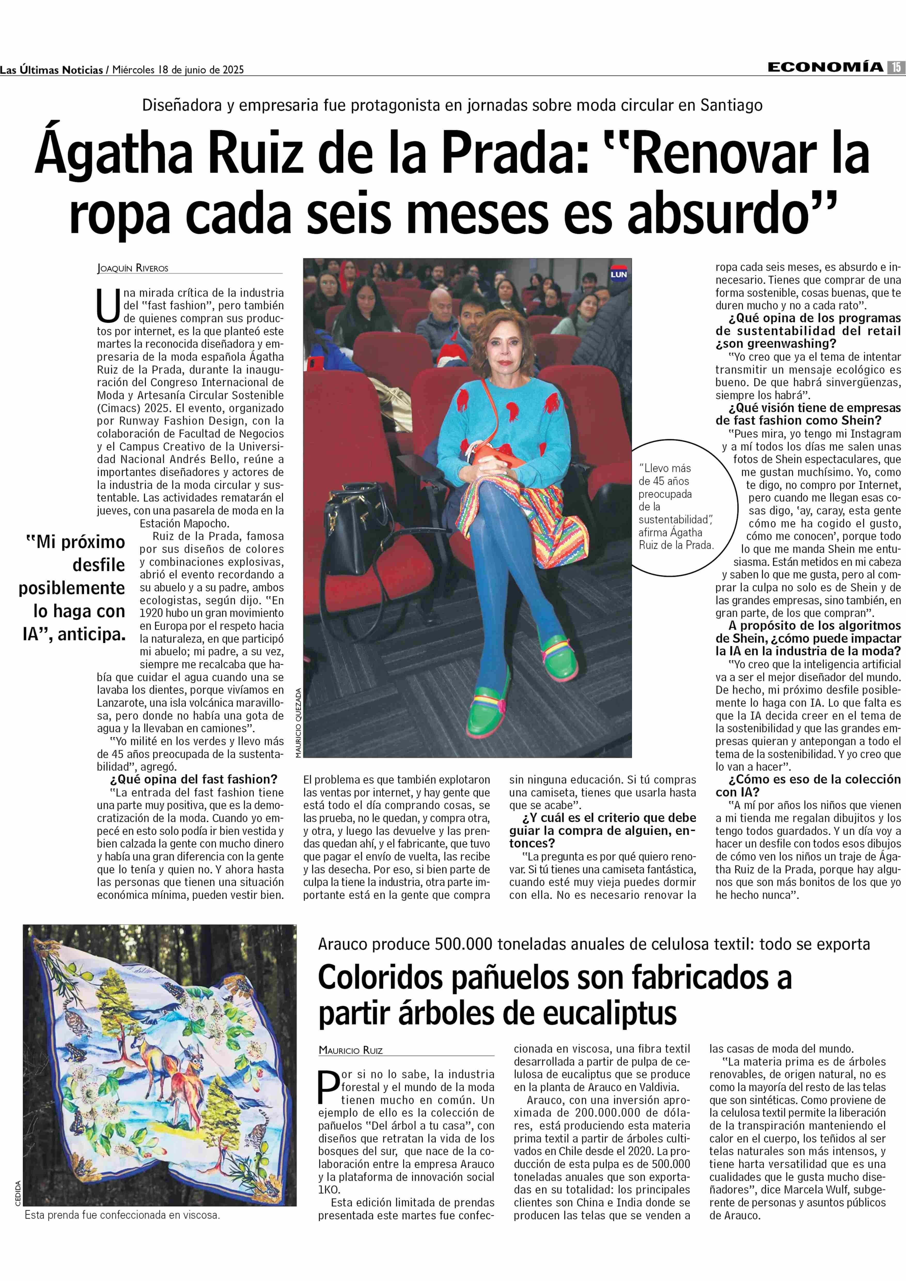 Ágatha Ruiz de la Prada: “Renovar la ropa cada seis meses es absurdo” 18-06-2025 Las Últimas Noticias |