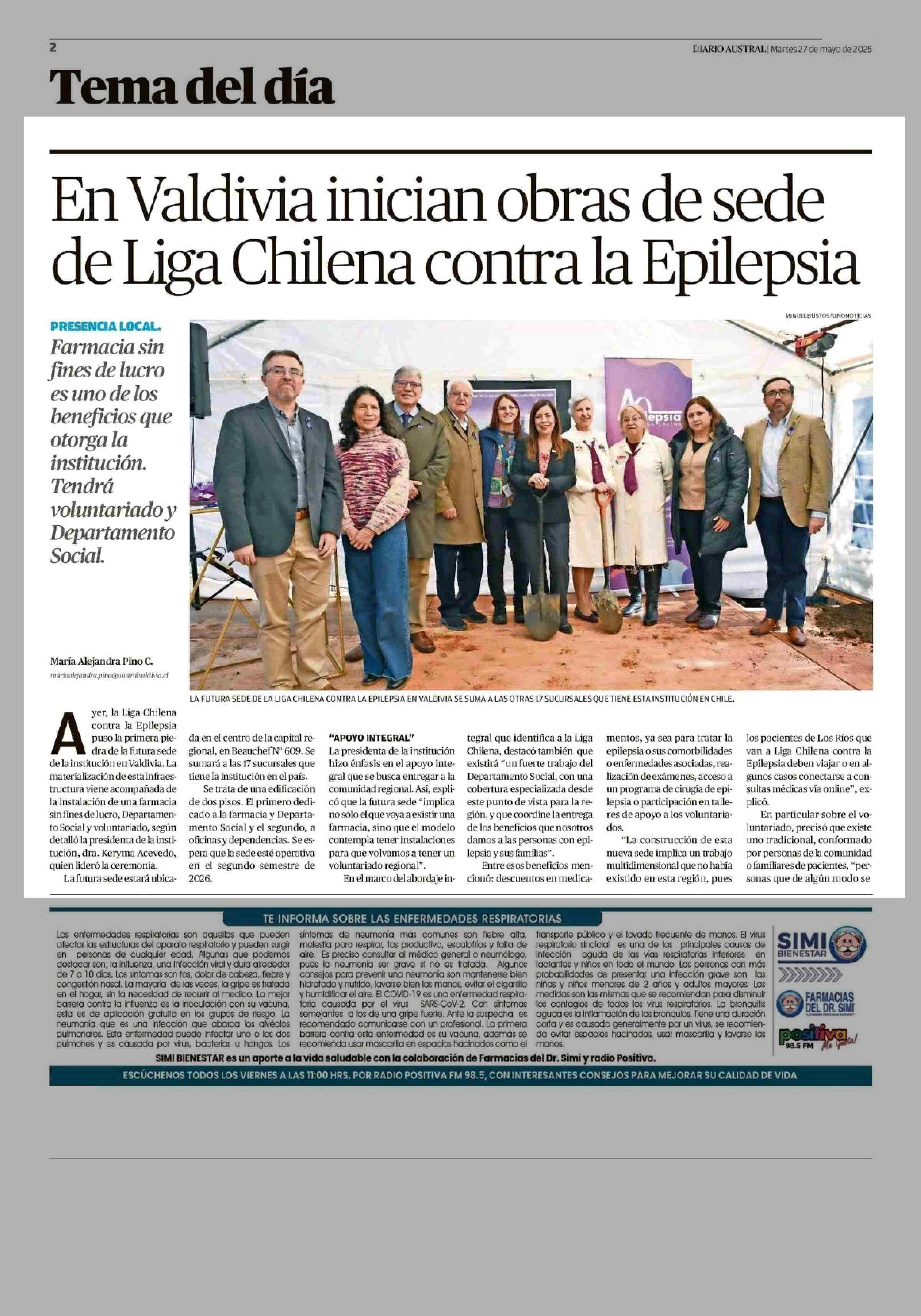 En Valdivia inician obras de sede de Liga Chilena contra la Epilepsia 27-05-2025 Diario Austral Región de Los Ríos |