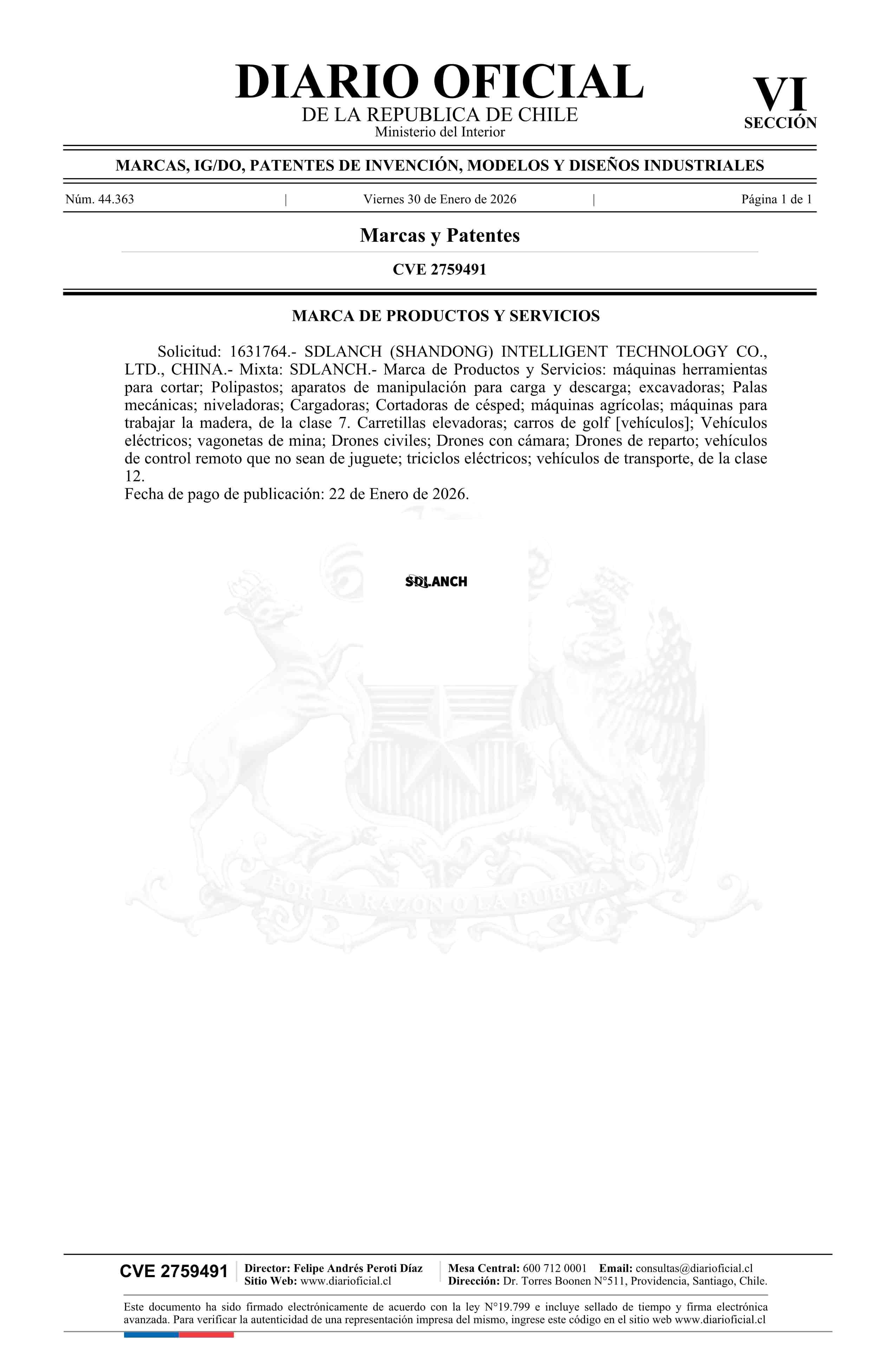Solicitud número 1631764.- SDLANCH 30-01-2026 Diario Oficial Edición Electrónica |