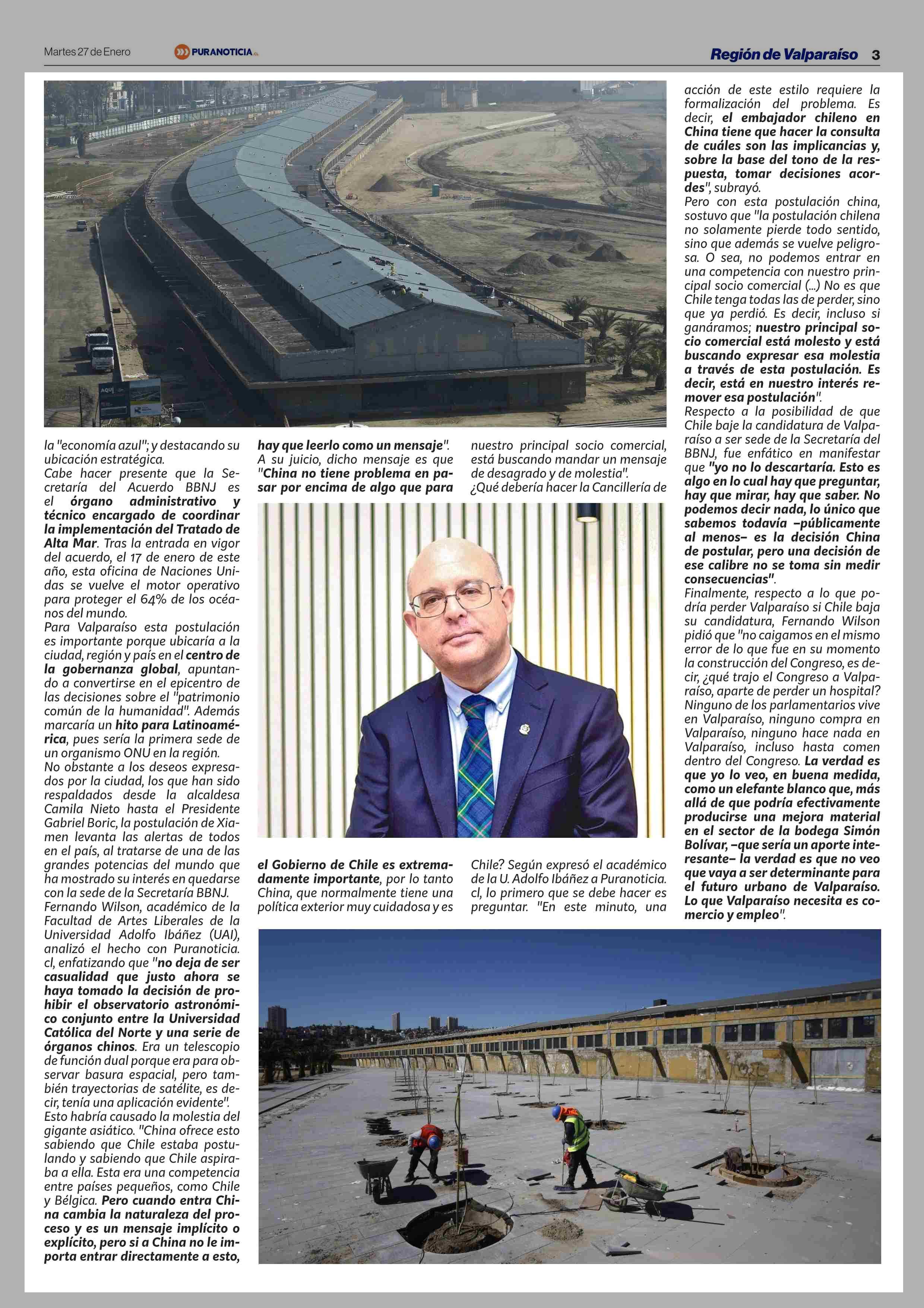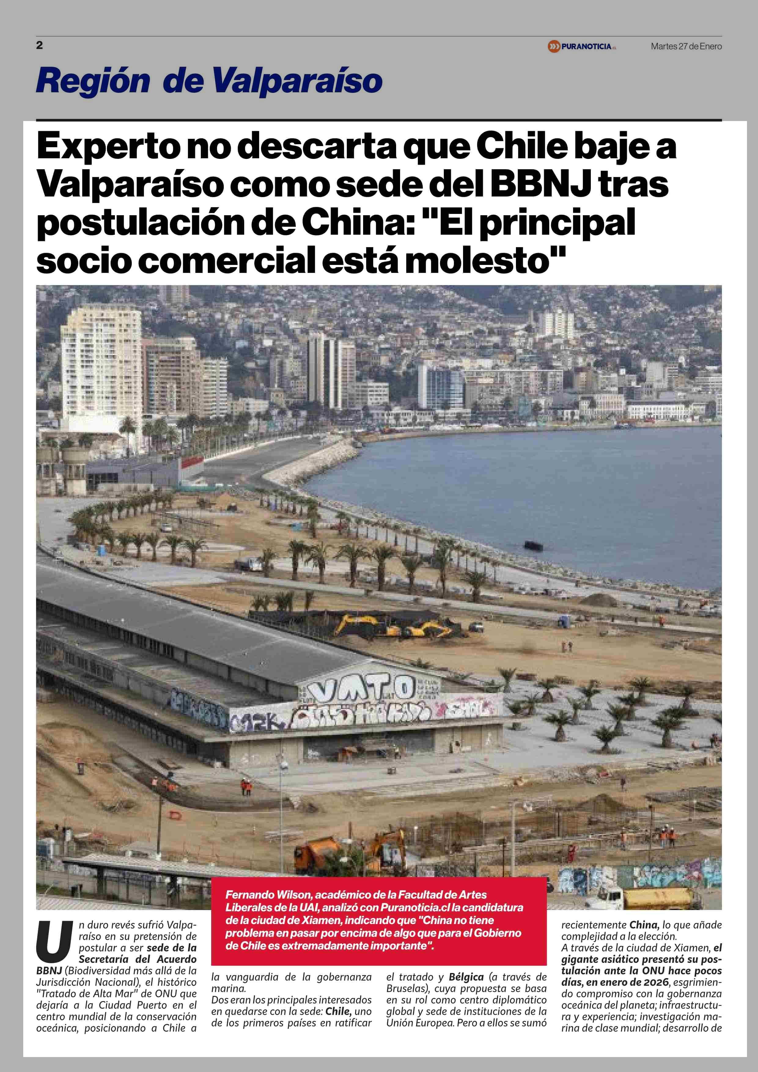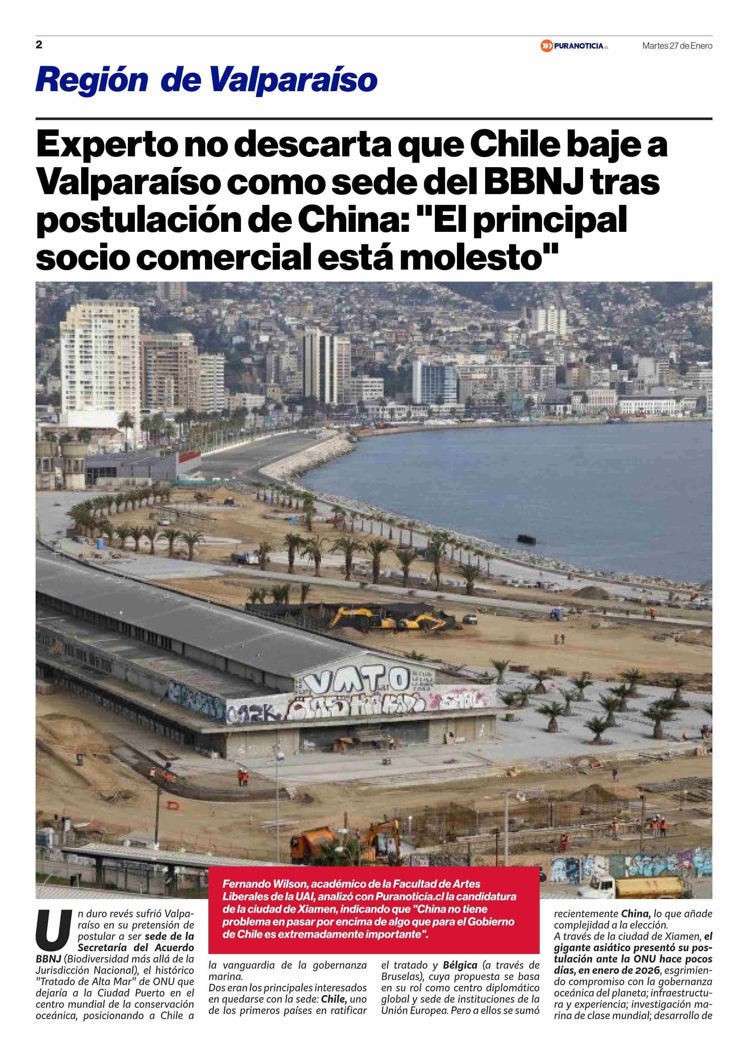Título: Experto no descarta que Chile baje a Valparaíso como sede del BBNJ tras postulación de China: "El principal socio comercial está molesto”