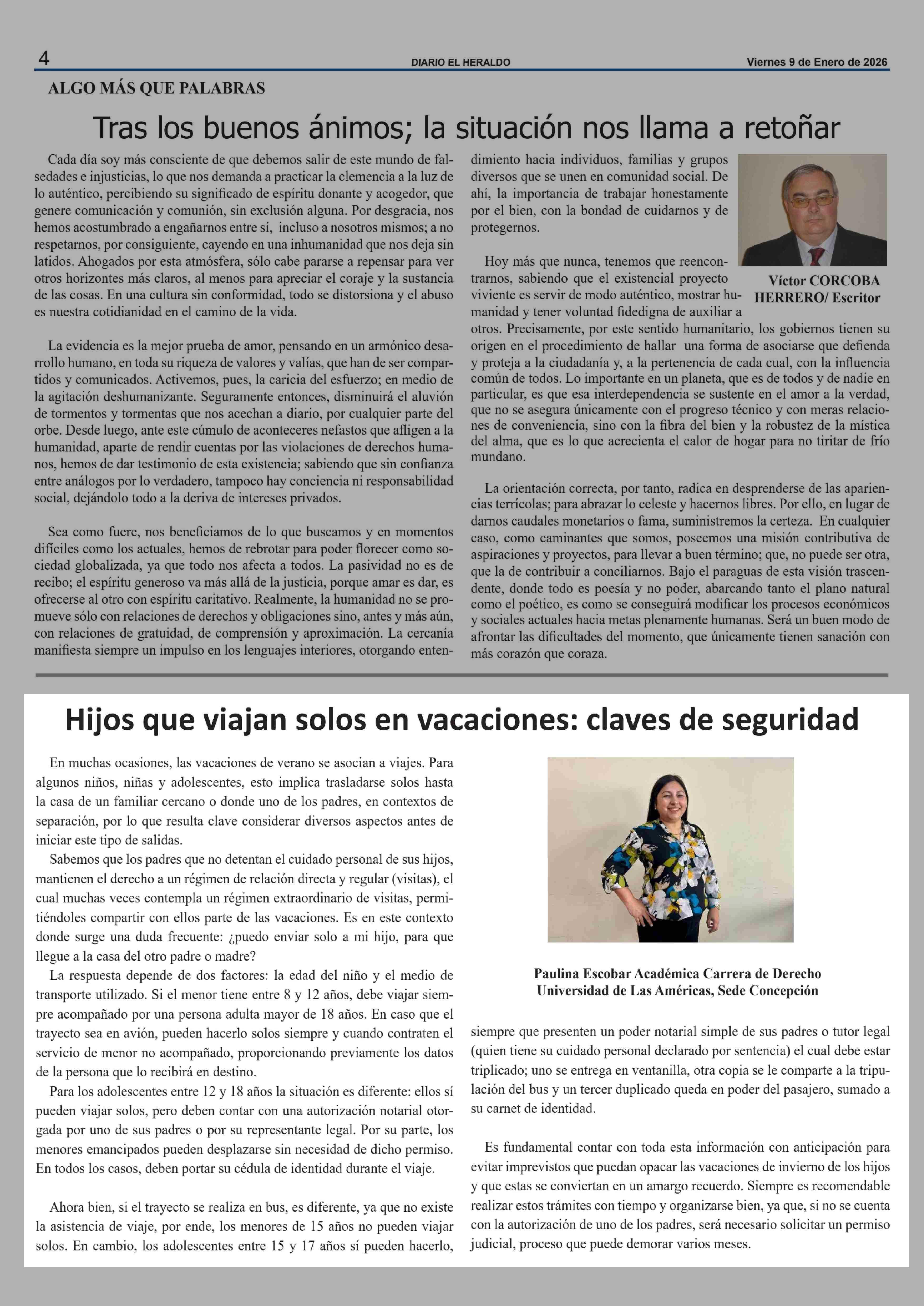 Columnas de Opinión: Hijos que viajan solos en vacaciones: claves de seguridad 09-01-2026 El Heraldo |