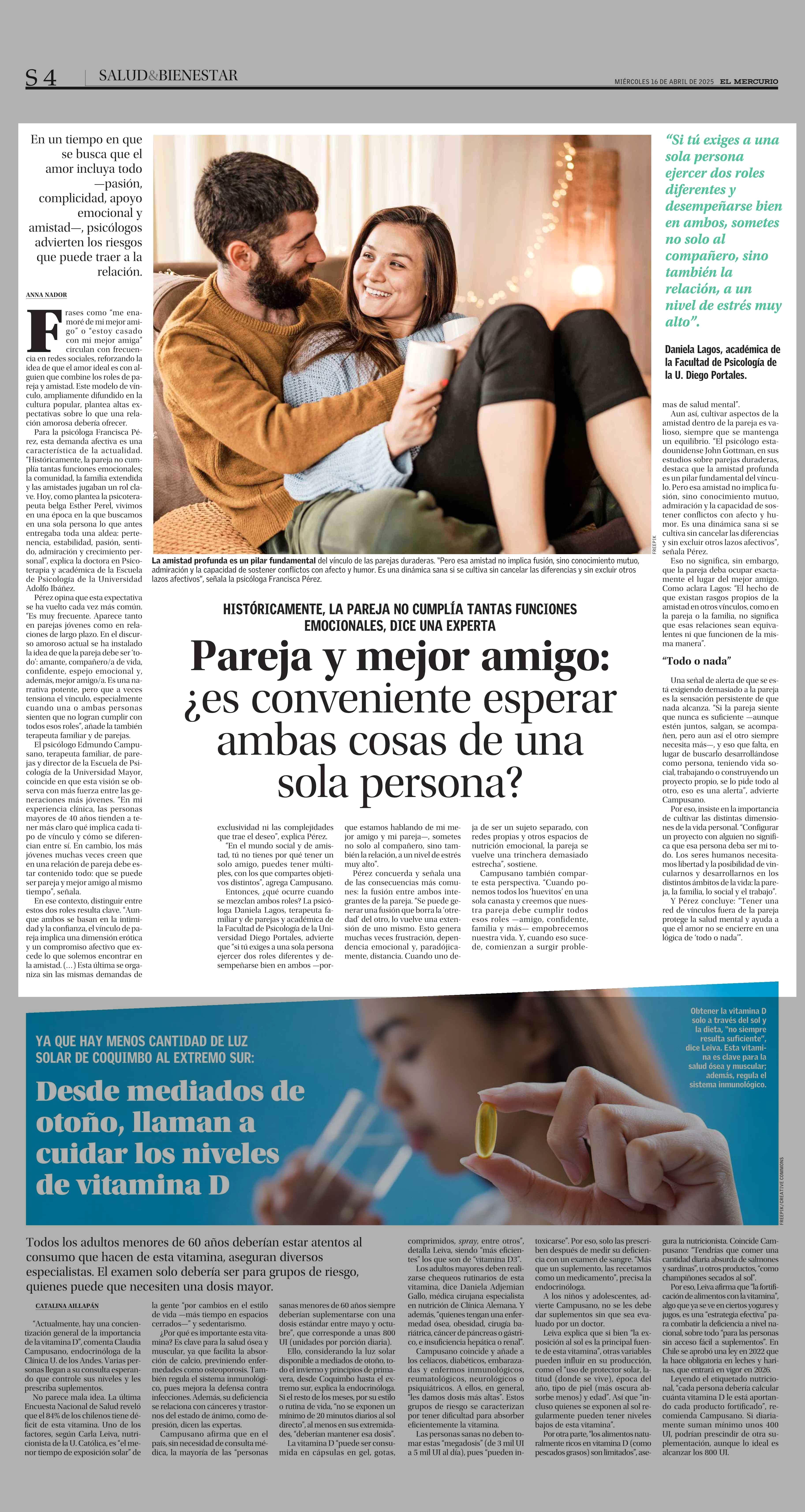 Pareja y mejor amigo: ¿es conveniente esperar ambas cosas de una sola persona? 16-04-2025 El Mercurio |