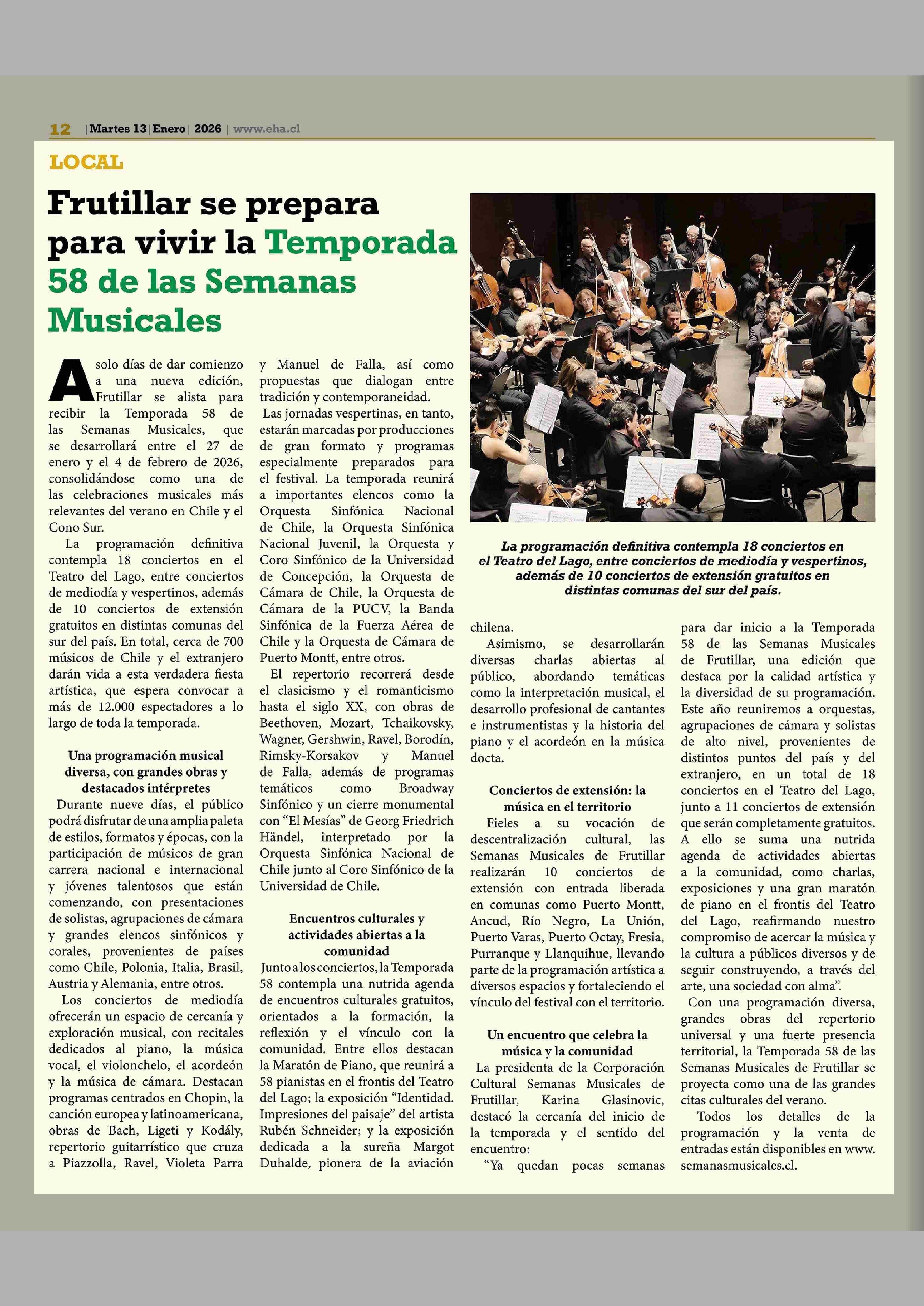 Título: Frutillar se prepara para vivir la Temporada 58 de las Semanas Musicales