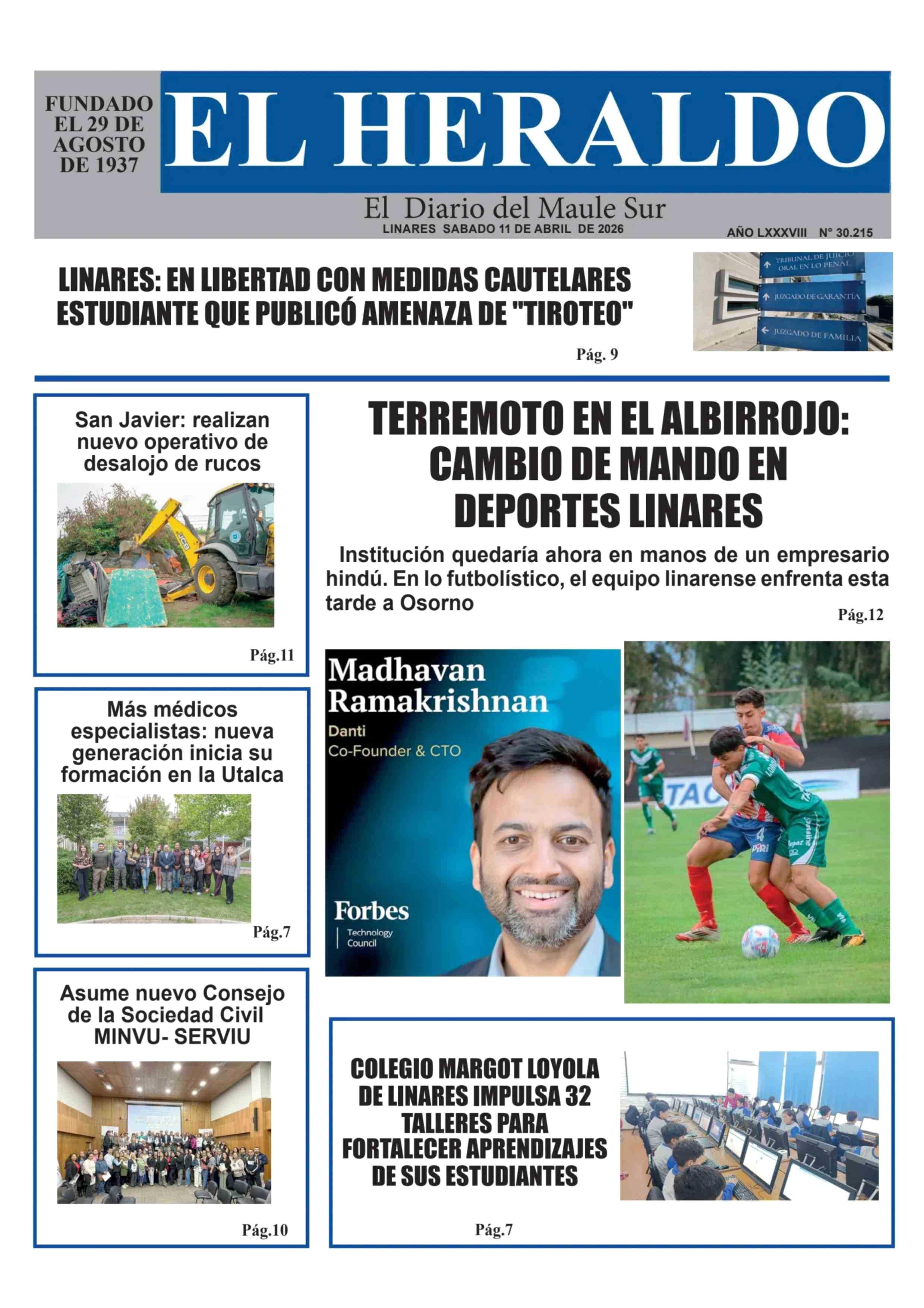 Fecha: 11-04-2026 Sector: Portada Región: Región del Maule