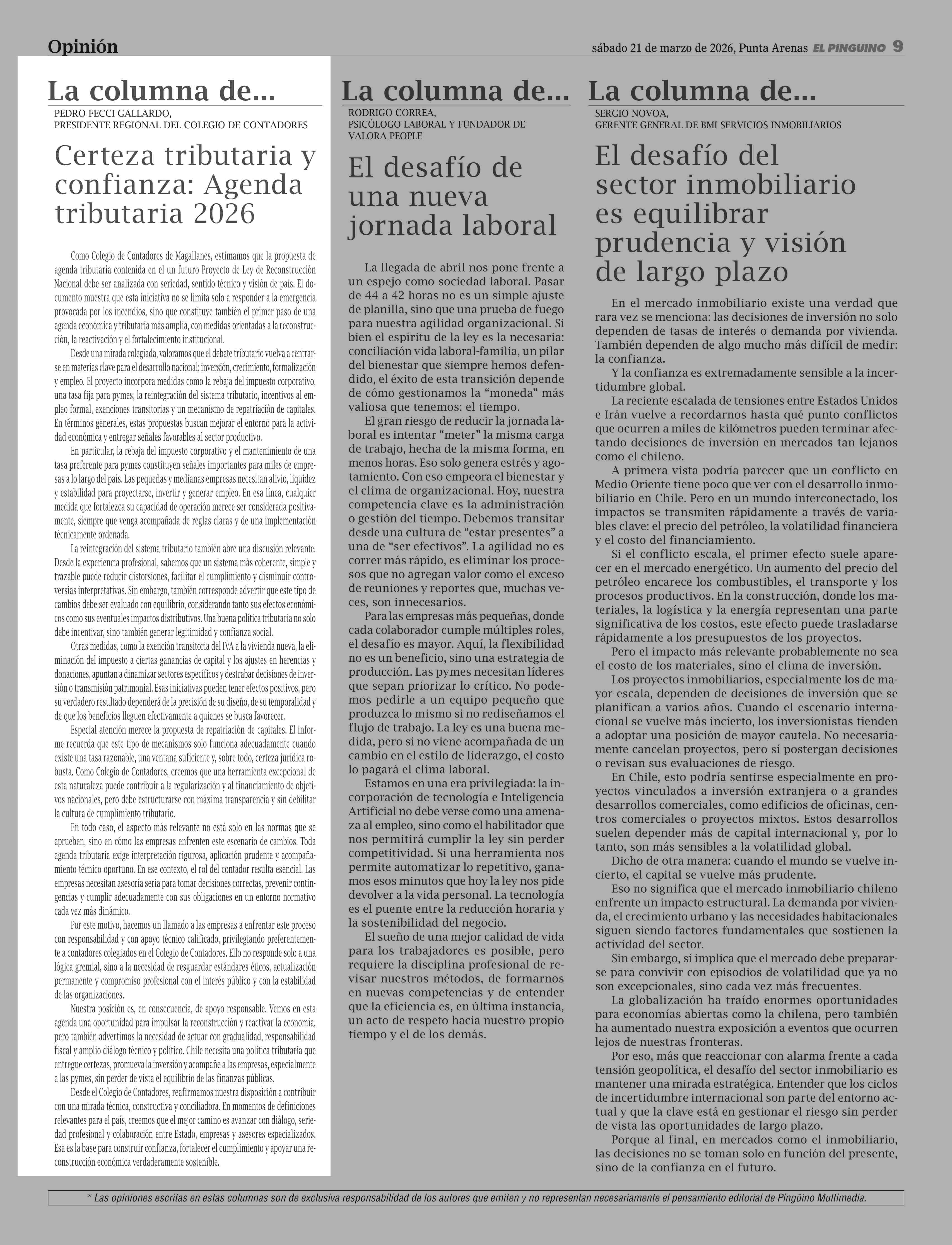 COLUMNAS DE OPINIÓN: Certeza tributaria y confianza: Agenda tributaria 2026 21-03-2026 El Pingüino |