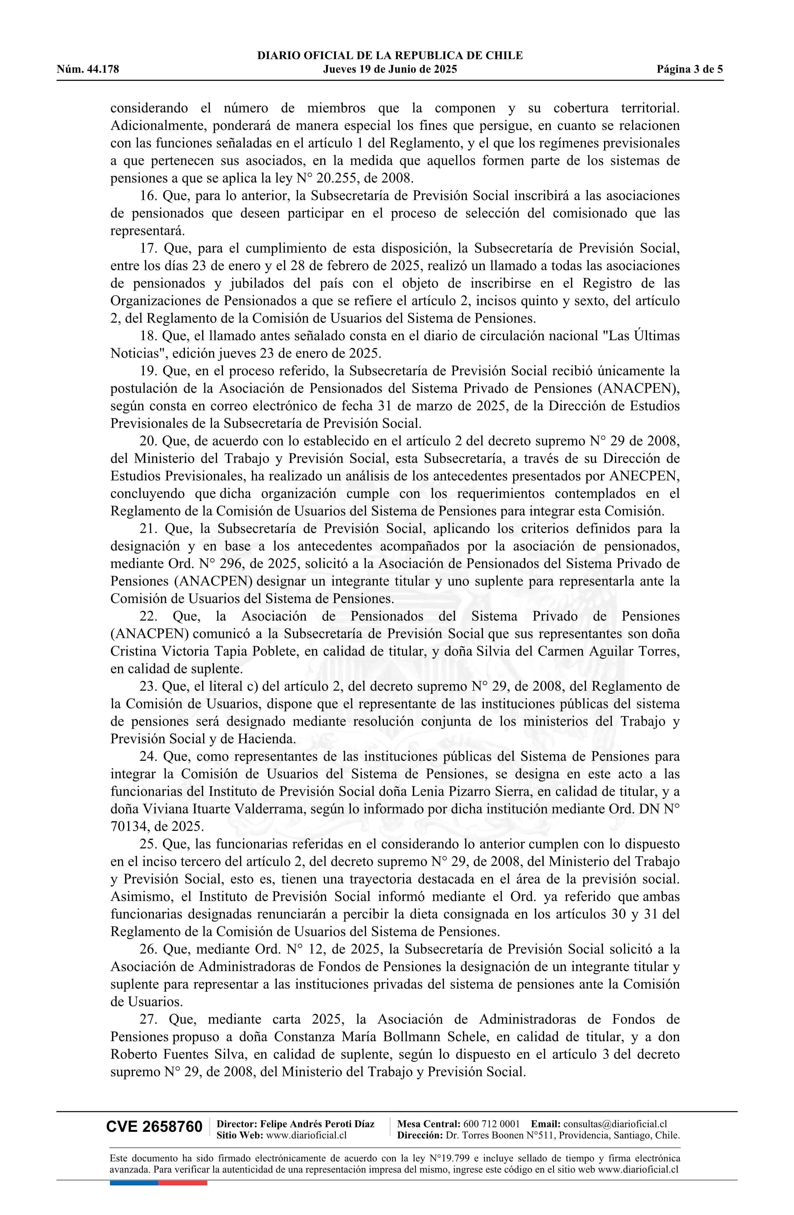 Resolución exenta número 454, de 2025.- Designa integrantes de la Comisión de Usuarios del Sistema de Pensiones