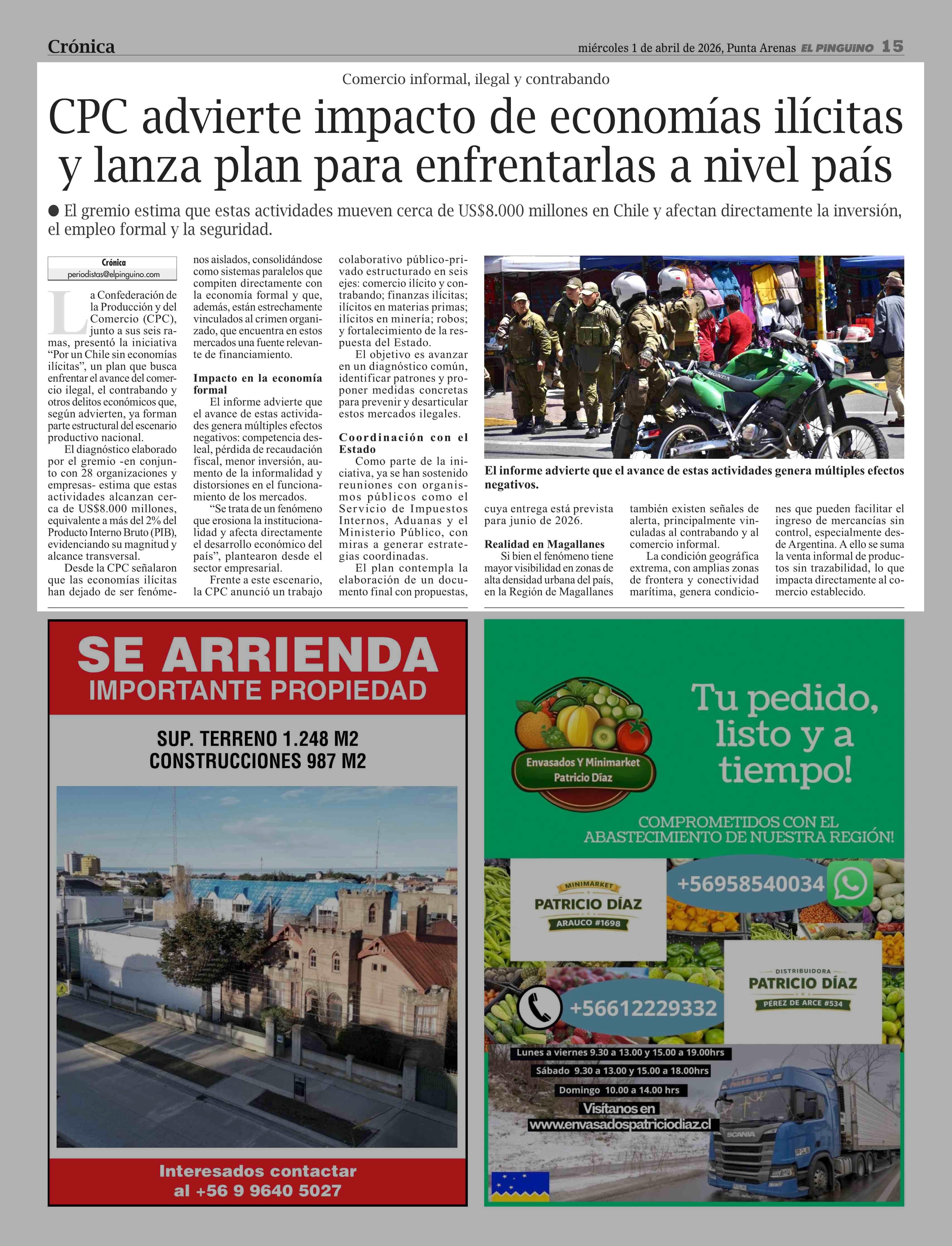 CPC advierte impacto de economías ilícitas y lanza plan para enfrentarlas a nivel país 01-04-2026 El Pingüino |