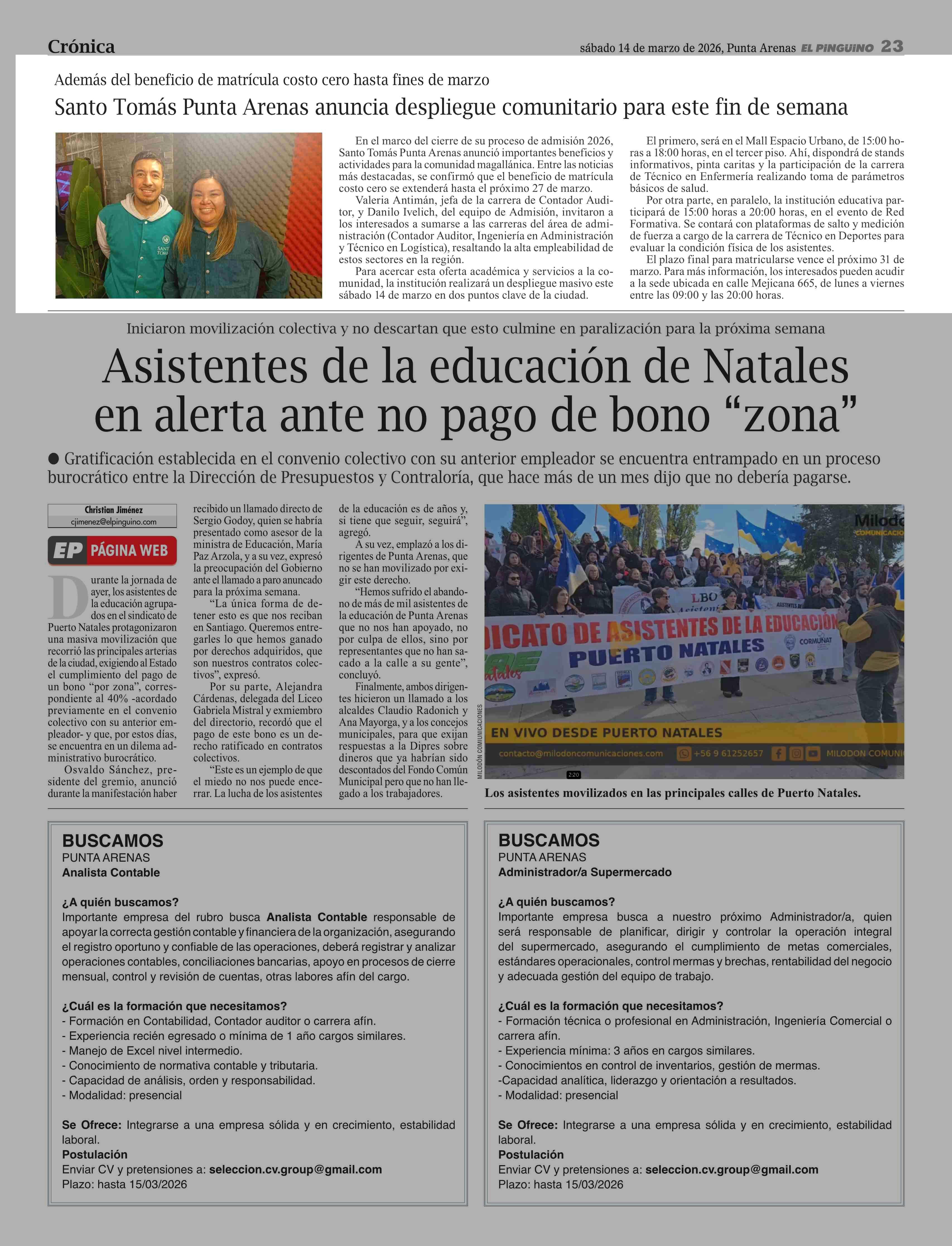 | Fecha: | 14-03-2026 | Sector: | Noticia general | Región: | Región de Magallanes y de la Antártica Chilena |