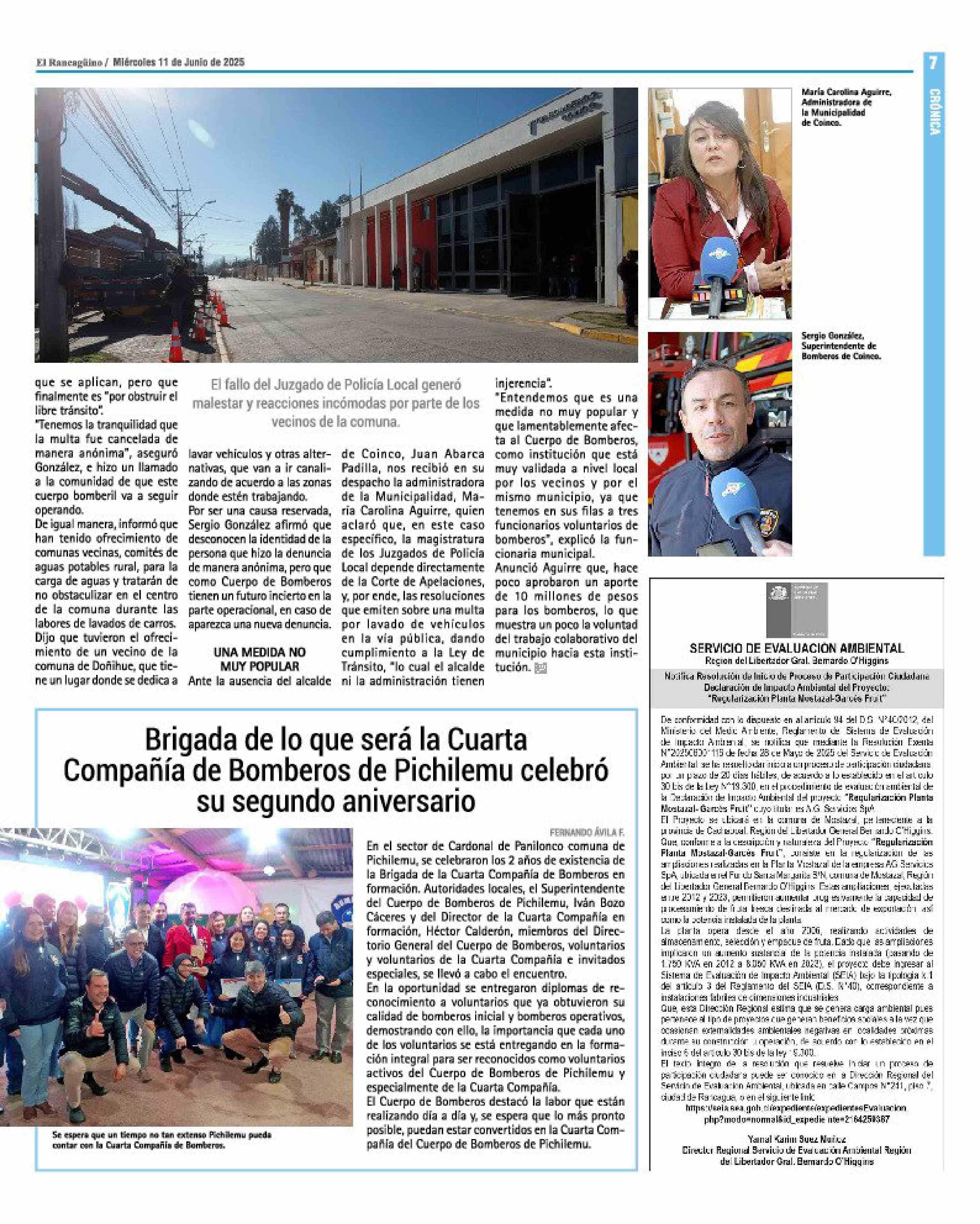 Brigada de lo que será la Cuarta Compañía de Bomberos de Pichilemu celebró su segundo aniversario 11-06-2025 El Rancagüino |
