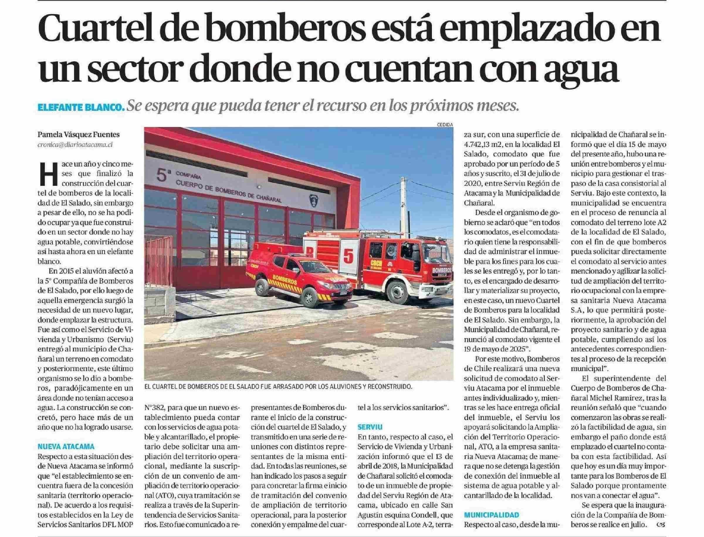 Título: Cuartel de bomberos está emplazado en un sector donde no cuentan con agua