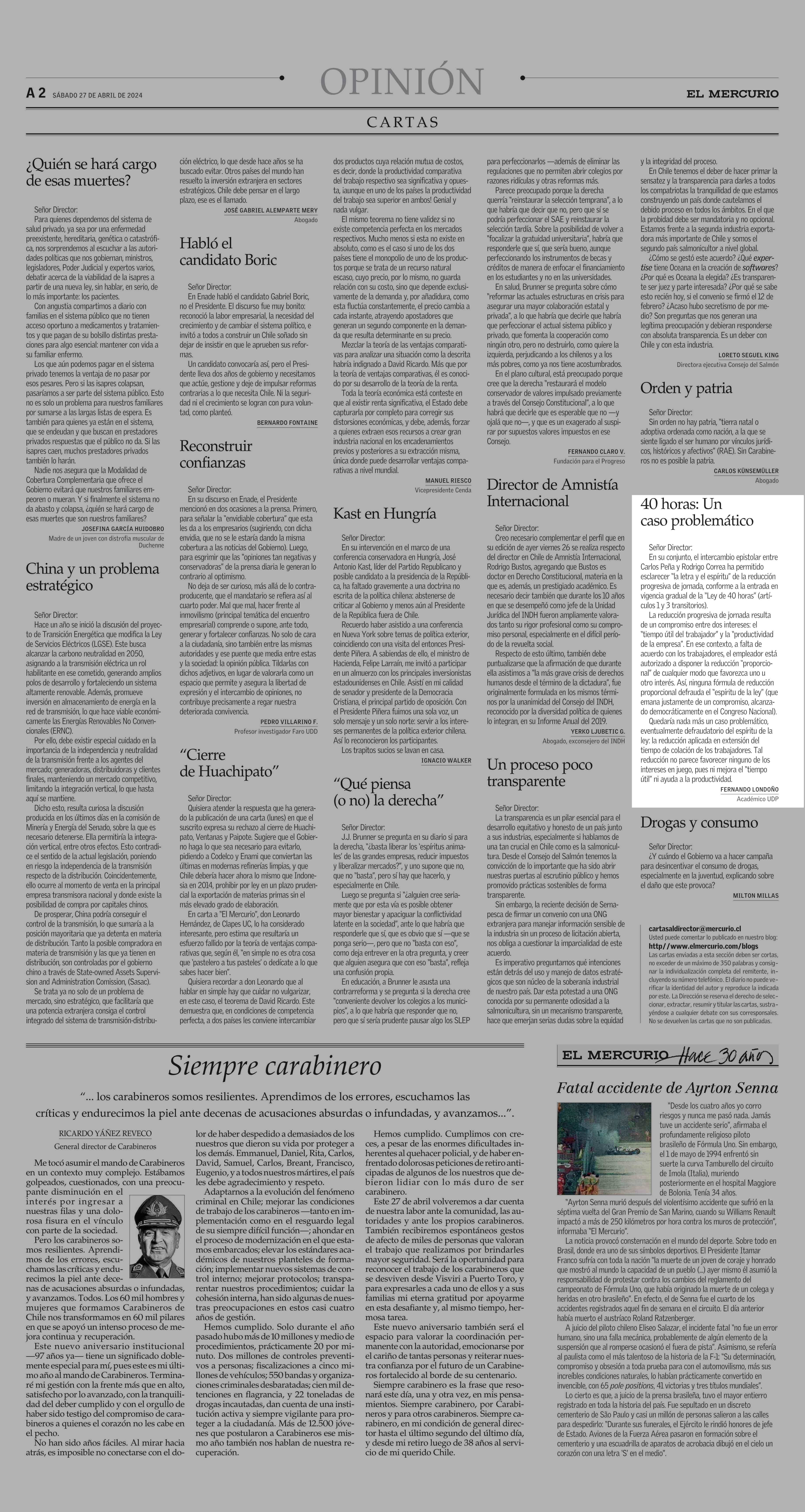 40 horas: Un caso problemático 27-04-2024 El Mercurio |
