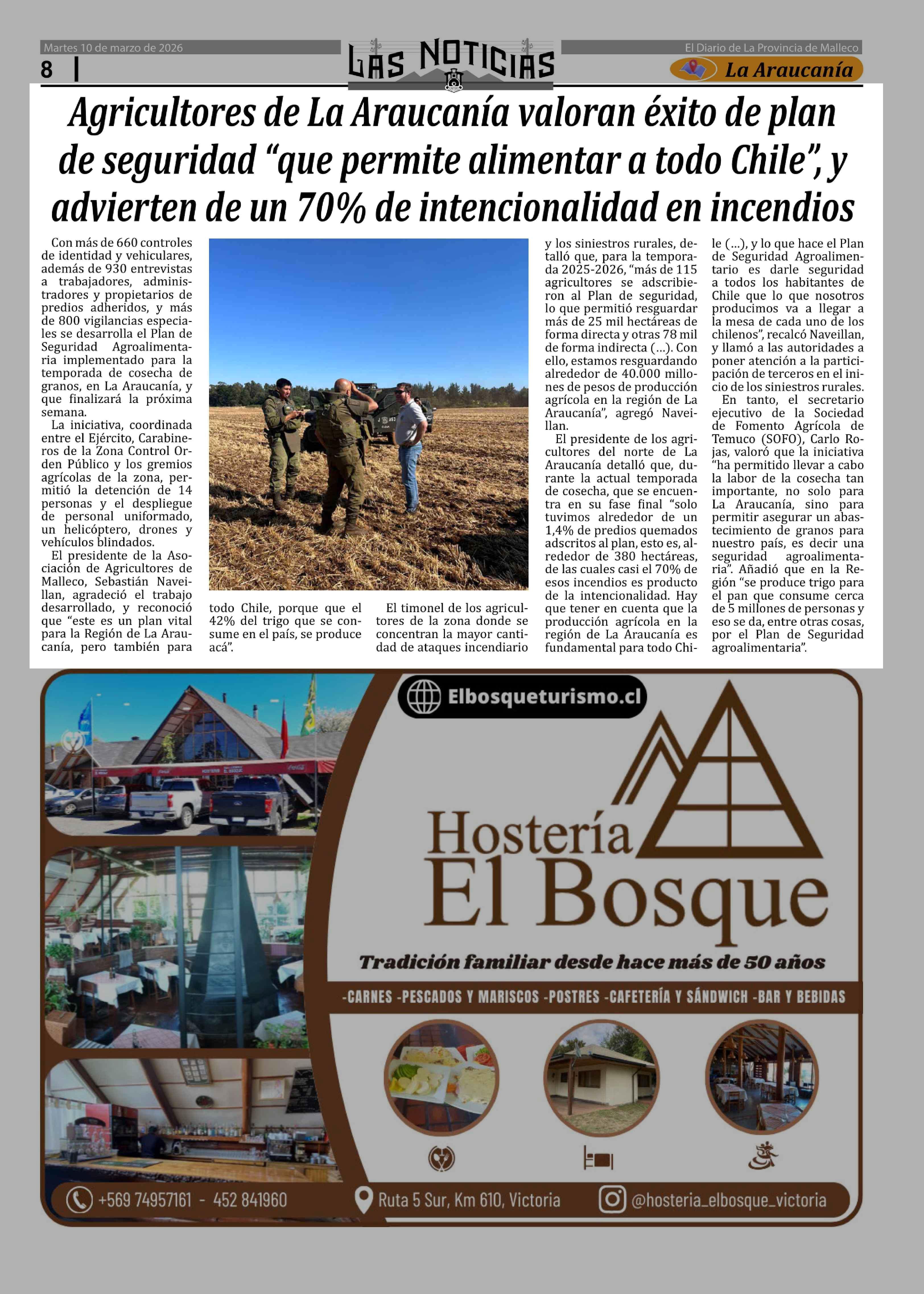Título: Agricultores de La Araucanía valoran éxito de plan de seguridad "que permite alimentar a todo Chile", y advierten de un 70% de intencionalidad en incendios