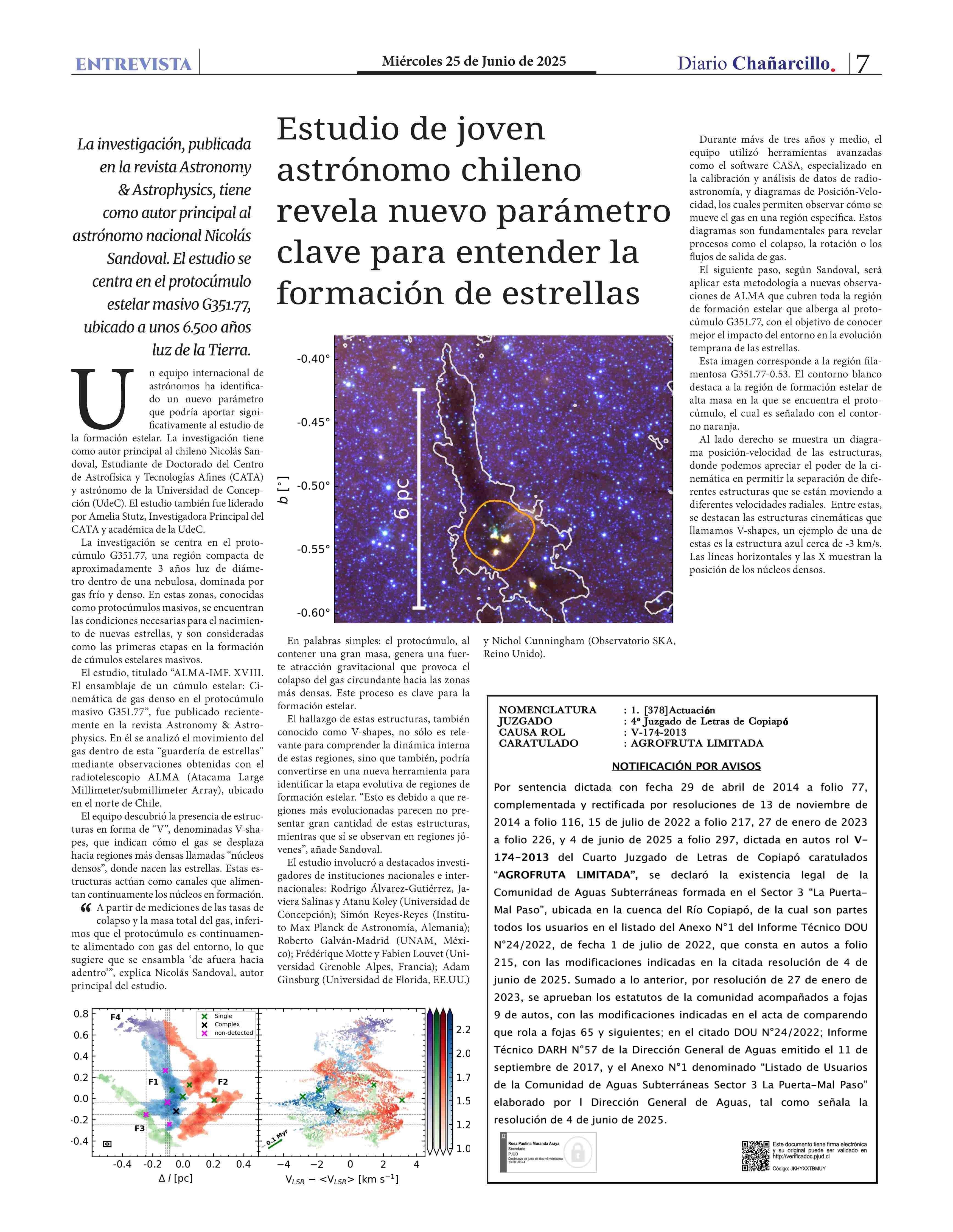 Estudio de joven astrónomo chileno revela nuevo parámetro clave para entender la formación de estrellas 25-06-2025 Diario Chañarcillo |