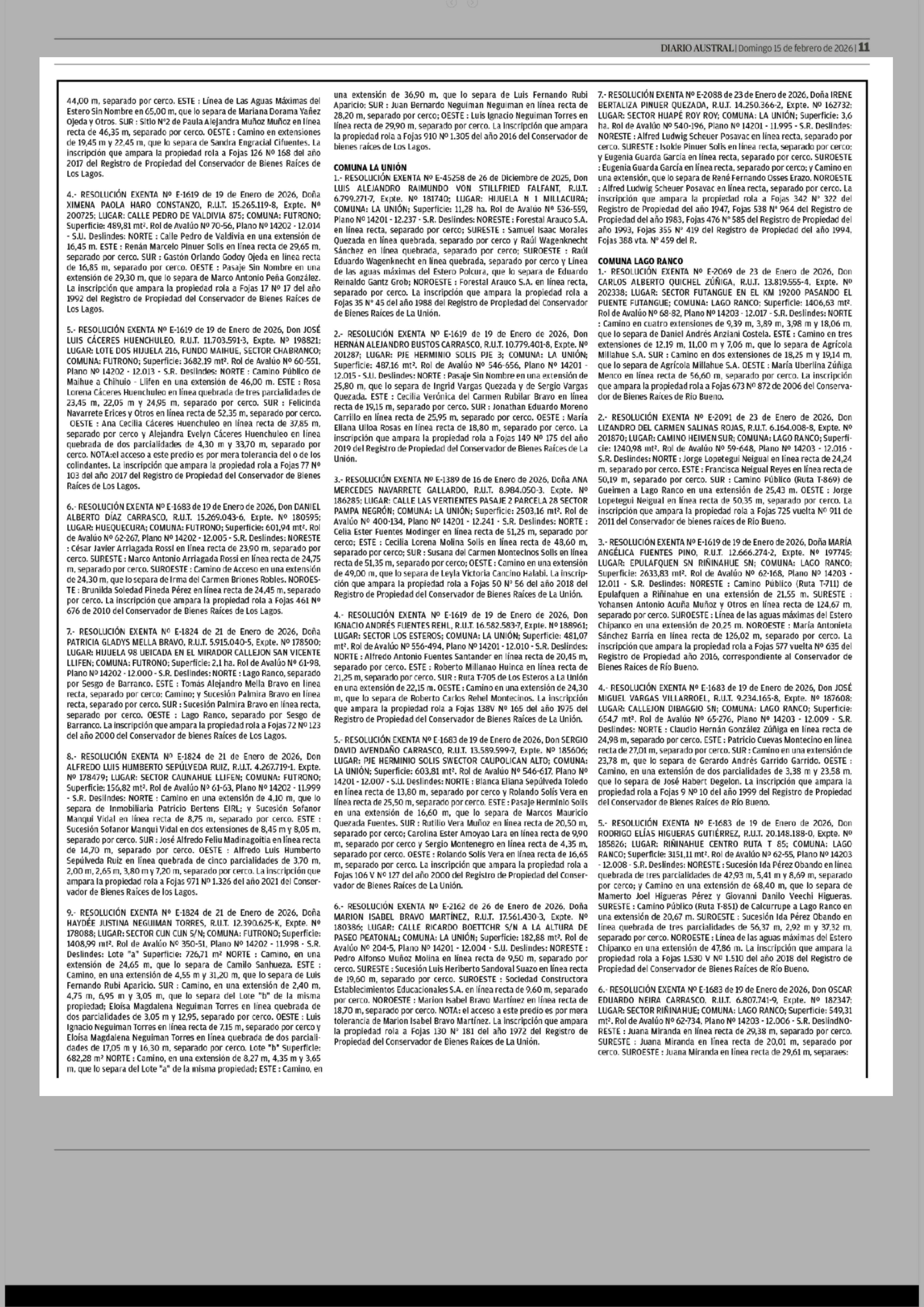 PUBLICIDAD 15-02-2026 Diario Austral Región de Los Ríos |