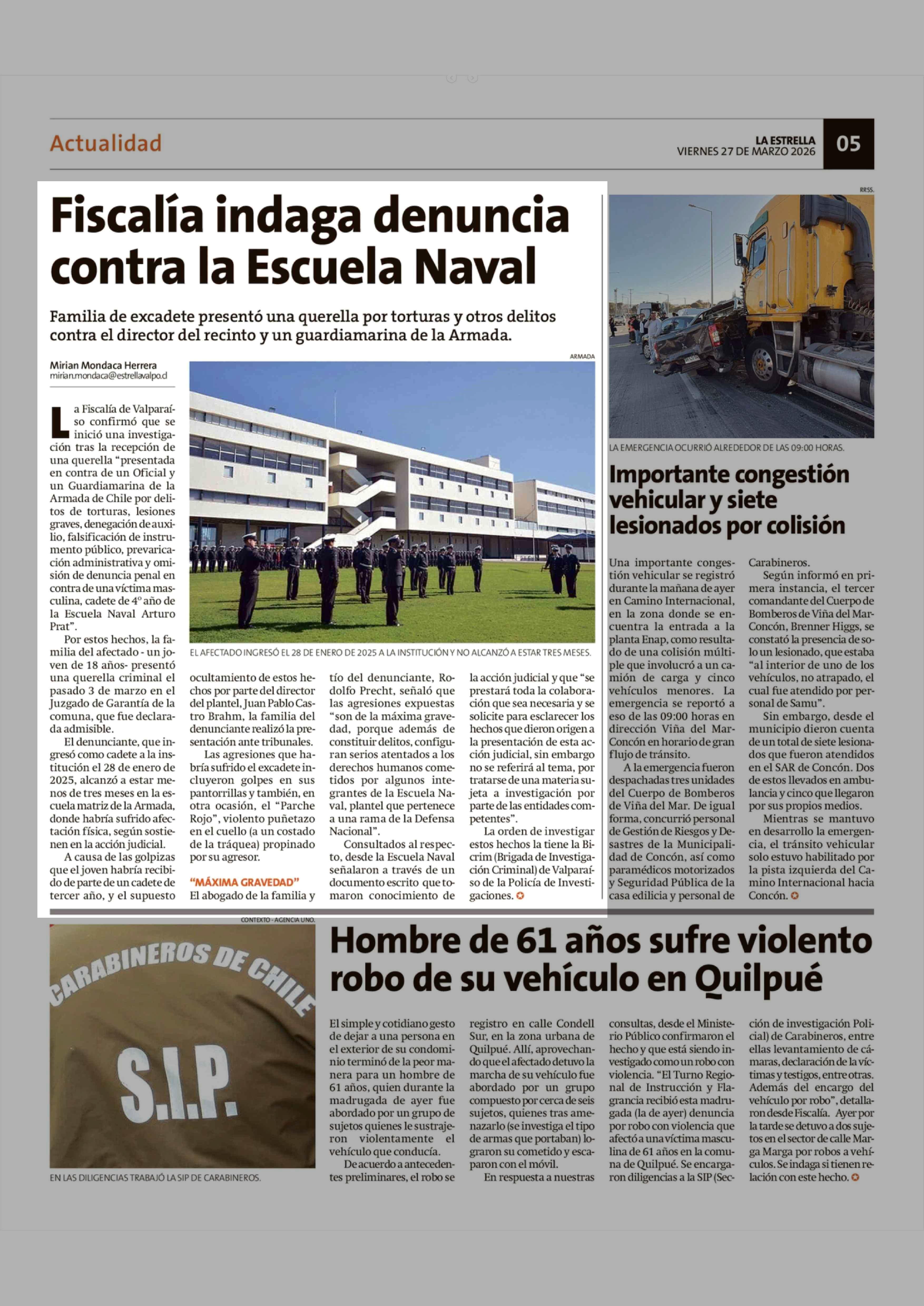 Fiscalía indaga denuncia contra la Escuela Naval 27-03-2026 La Estrella de Valparaíso |