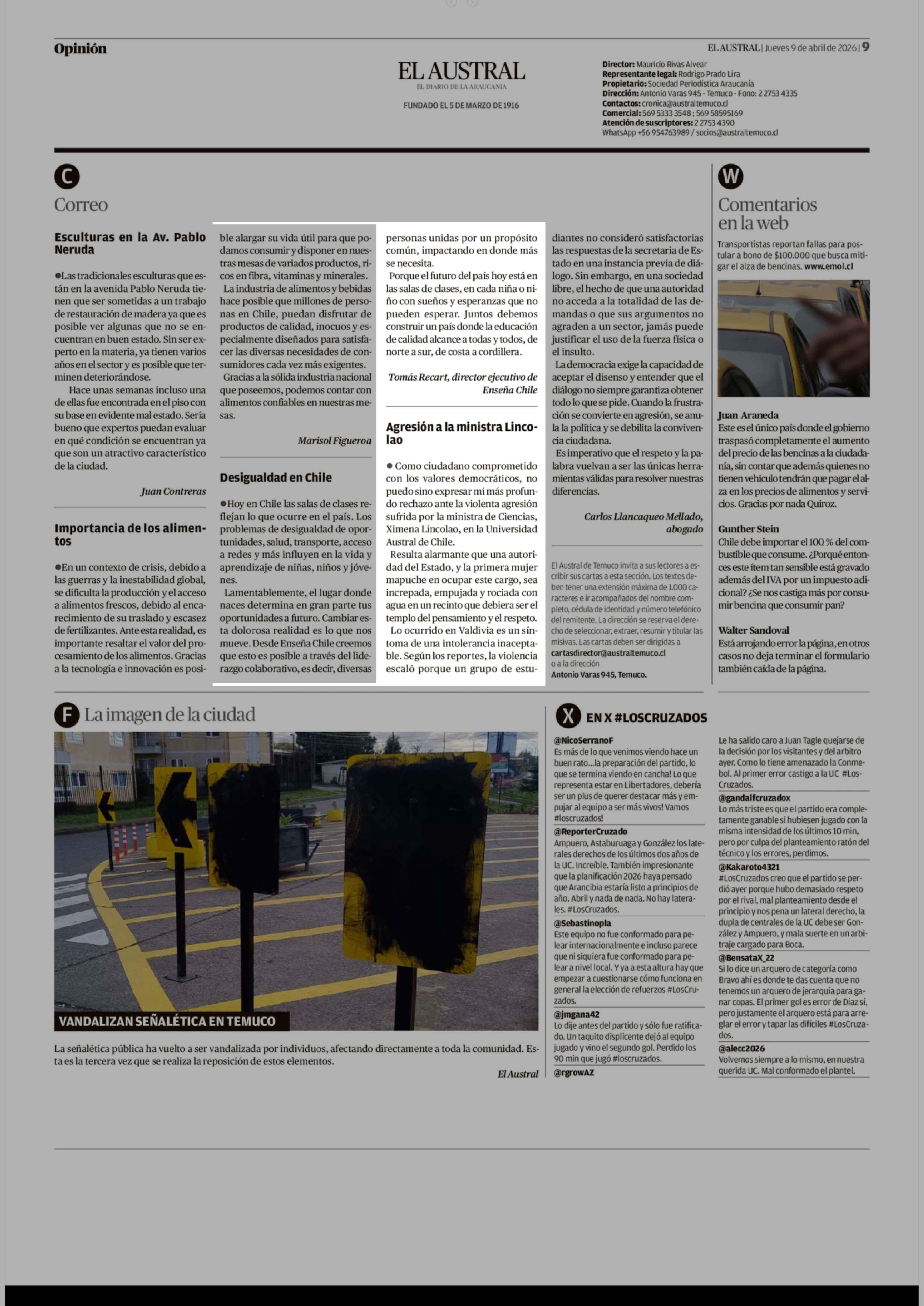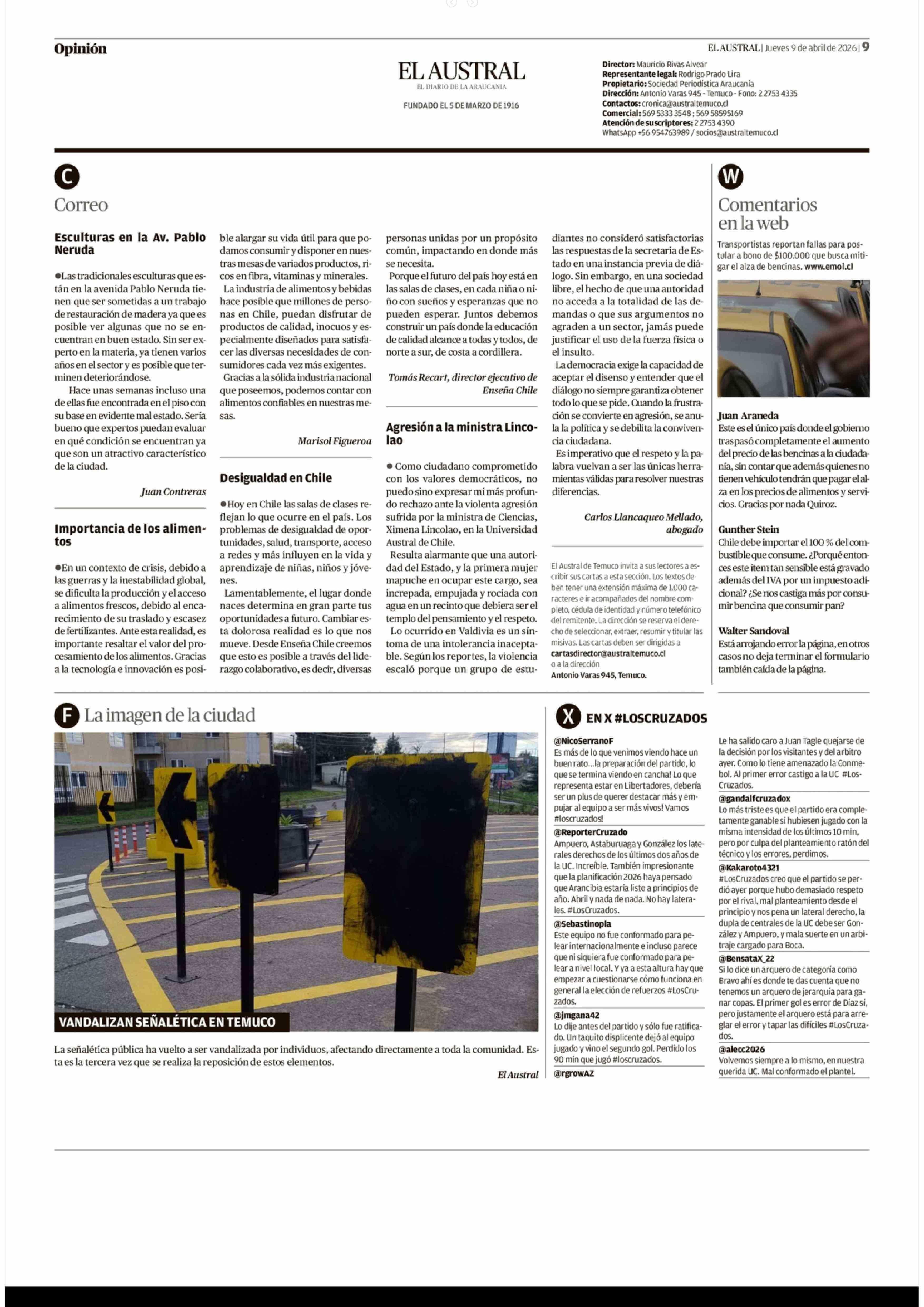 Fuente: El Austral de la Araucanía (El Austral de la Araucanía) Página(s): 9