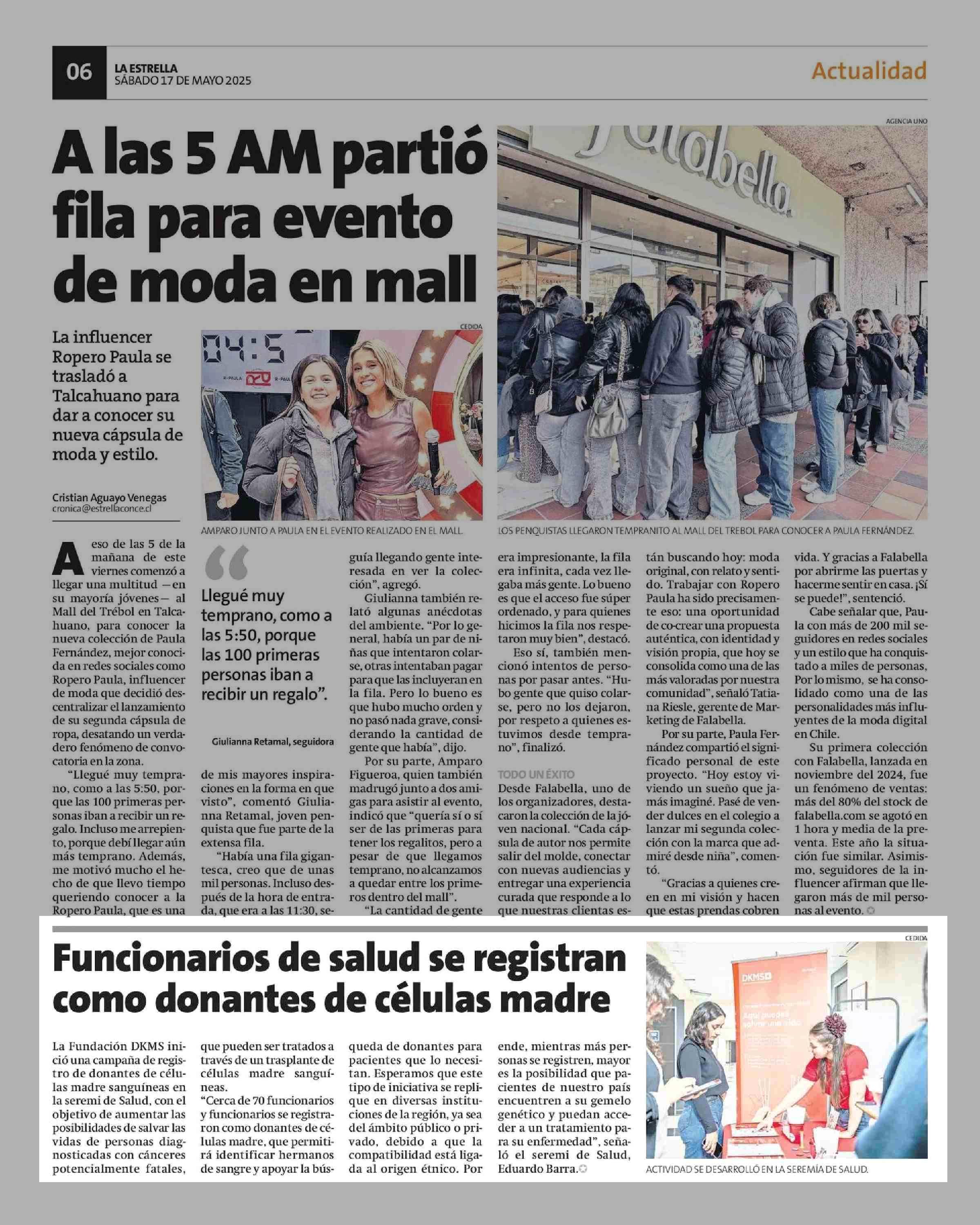 Funcionarios de salud se registran », como donantes de células madre 17-05-2025 La Estrella de Concepción |