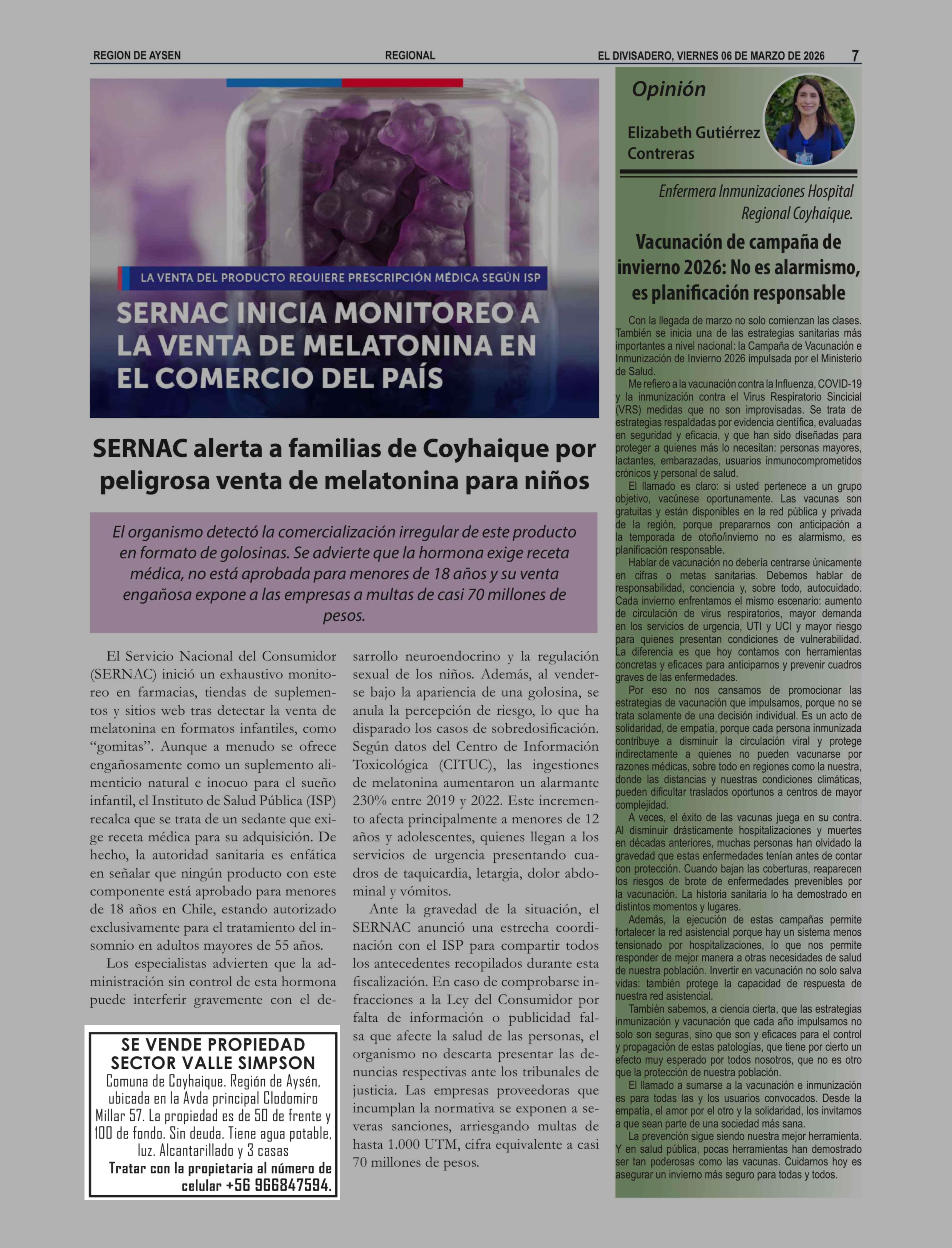 Fecha: 06-03-2026 Sector: Aviso Inmobiliario Región: Región Aysén del General Carlos Ibáñez del Campo