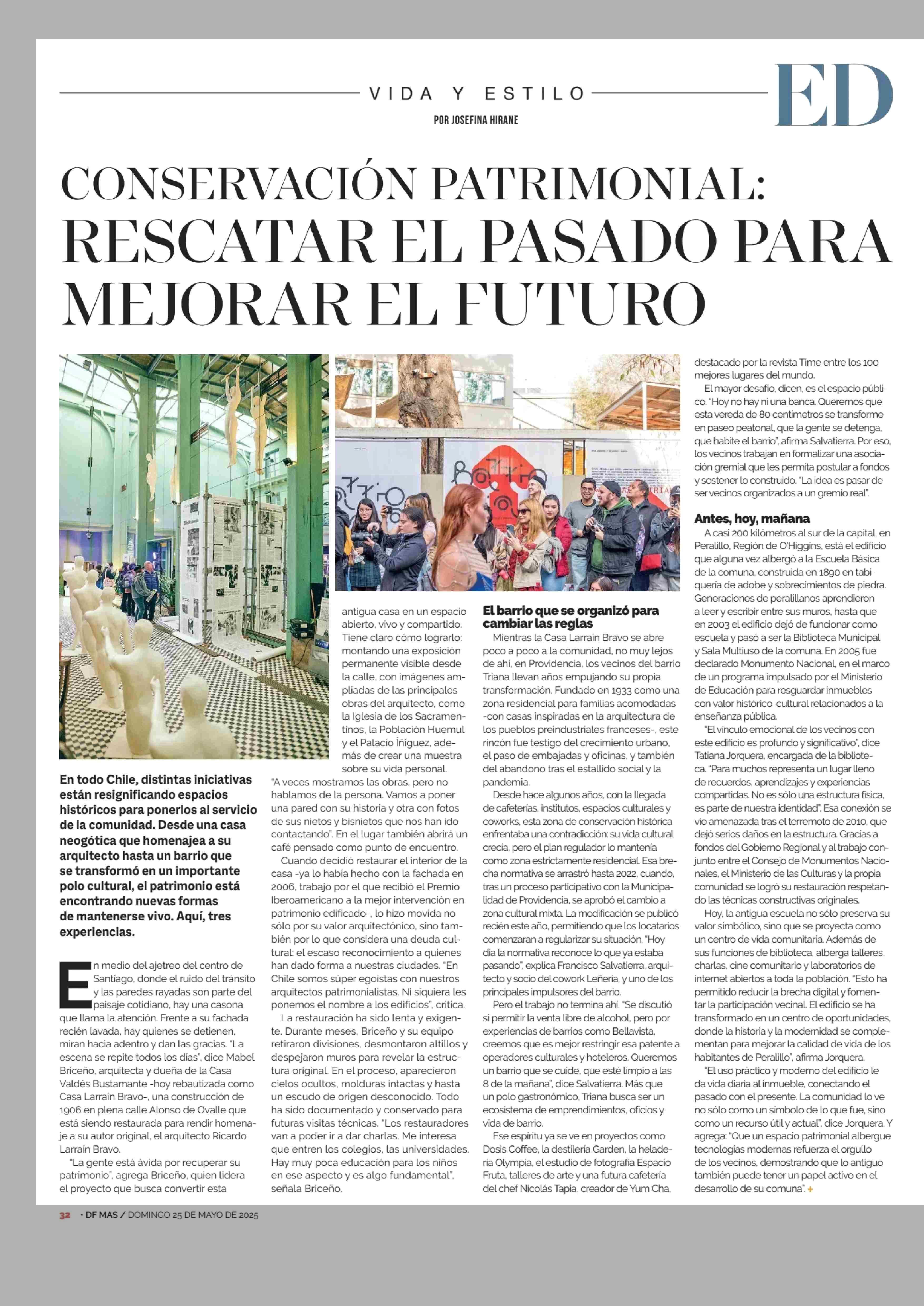 CONSERVACIÓN PATRIMONIAL: RESCATAR EL PASADO PARA MEJORAR EL FUTURO 25-05-2025 Diario Financiero |