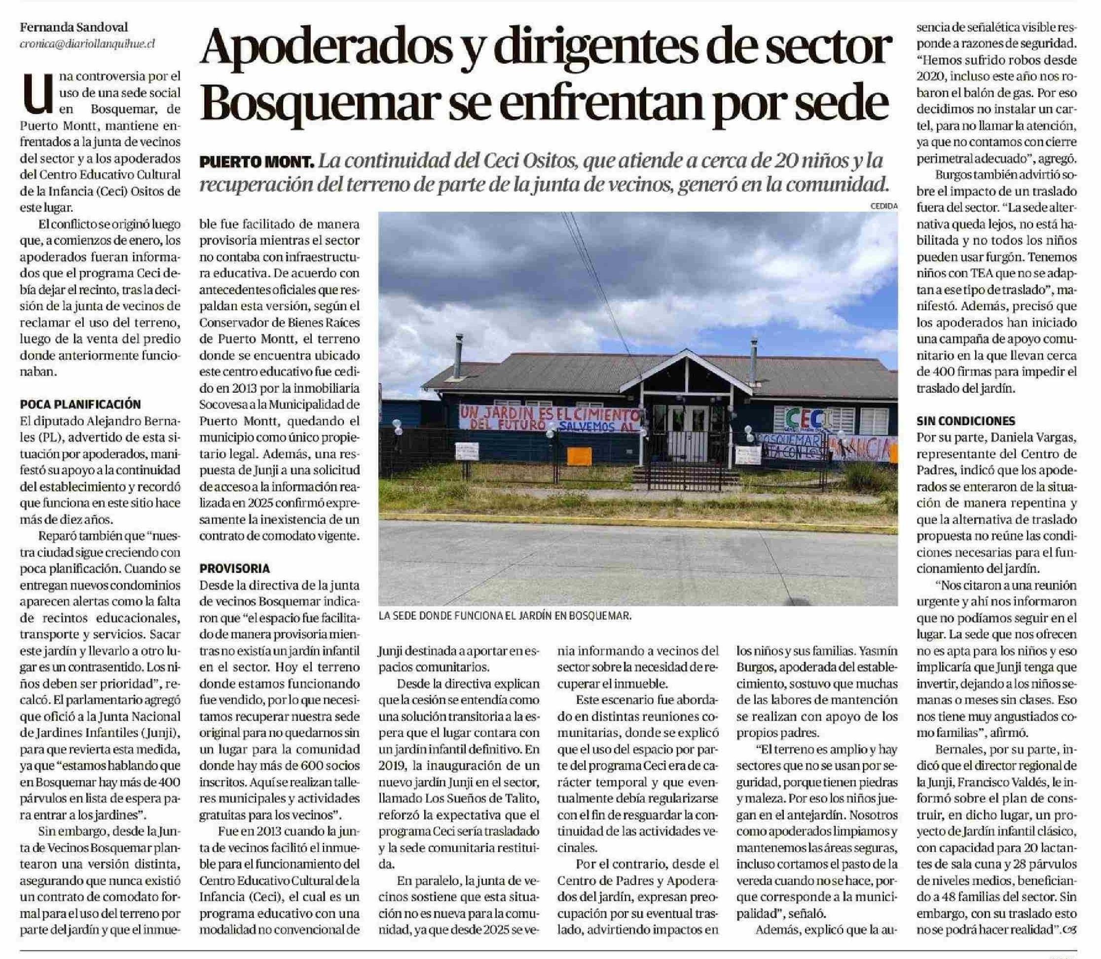 Apoderados y dirigentes de sector Bosquemar se enfrentan por sede 18-01-2026 El Llanquihue |