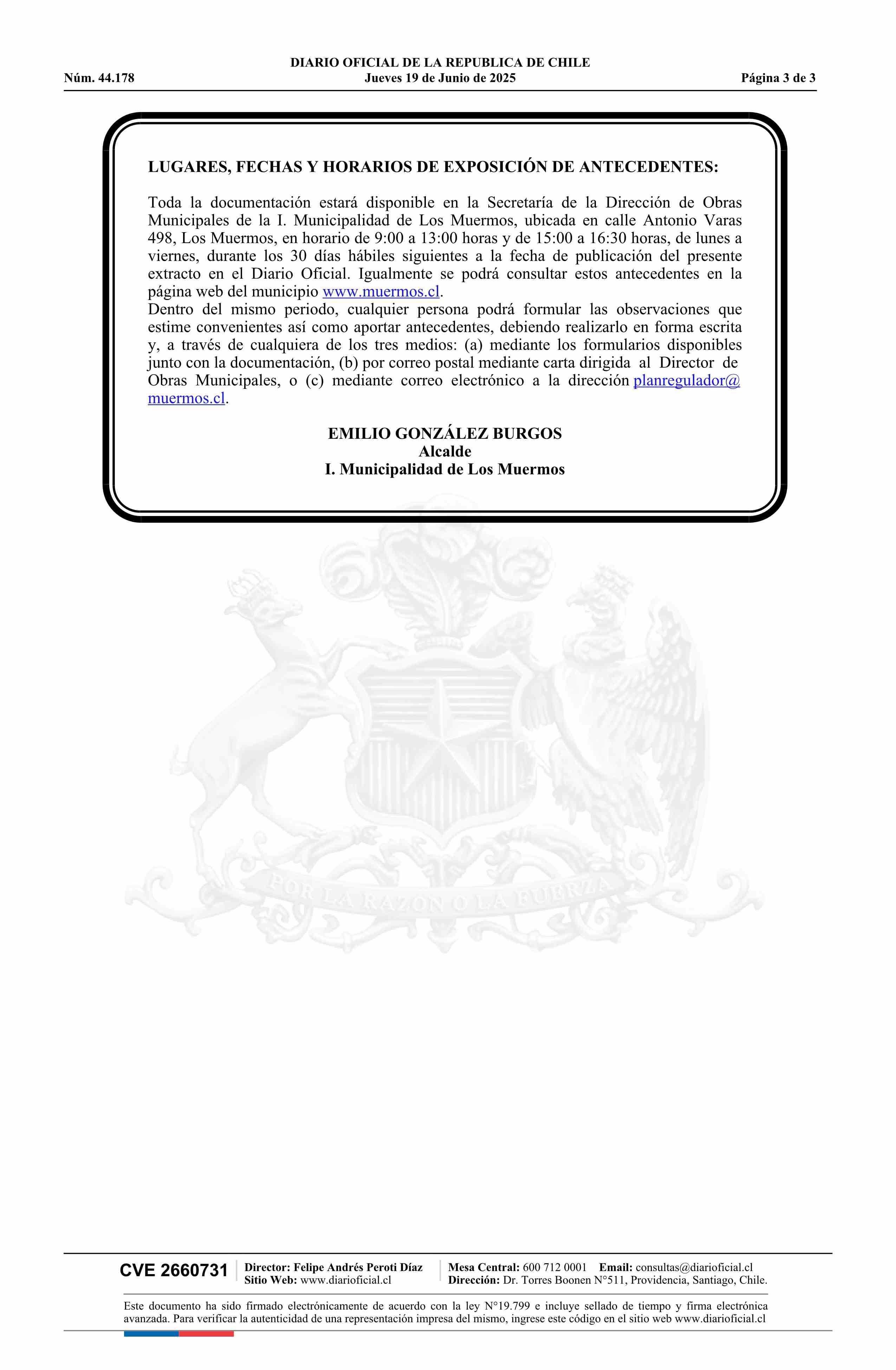 | Fuente: | Diario Oficial Edición Electrónica (Diario Oficial de Chile - 4 Avisos Destacados) | Página(s): | 5-7 |