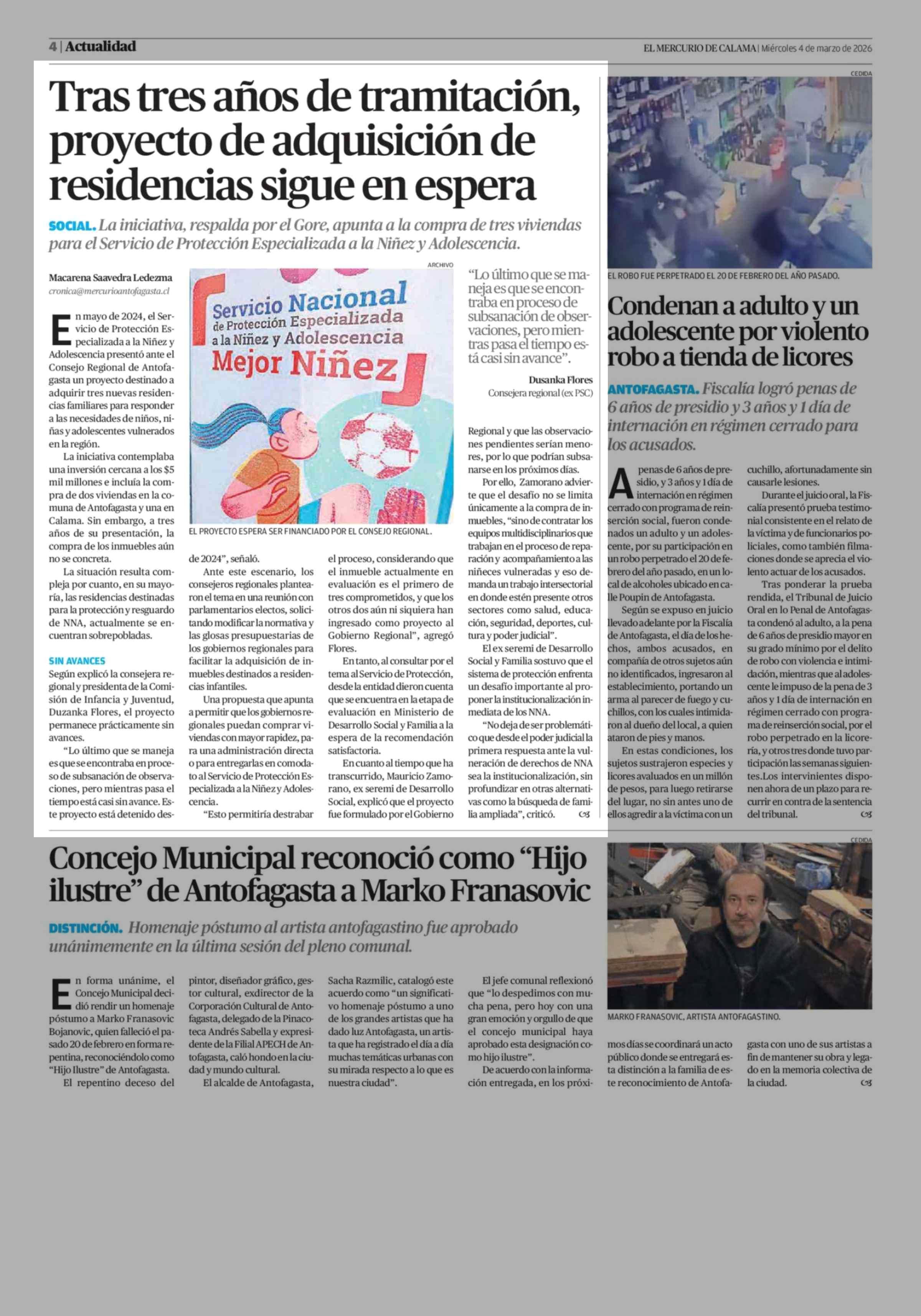 Tras tres años de tramitación, proyecto de adquisición de residencias sigue en espera 04-03-2026 El Mercurio de Calama |