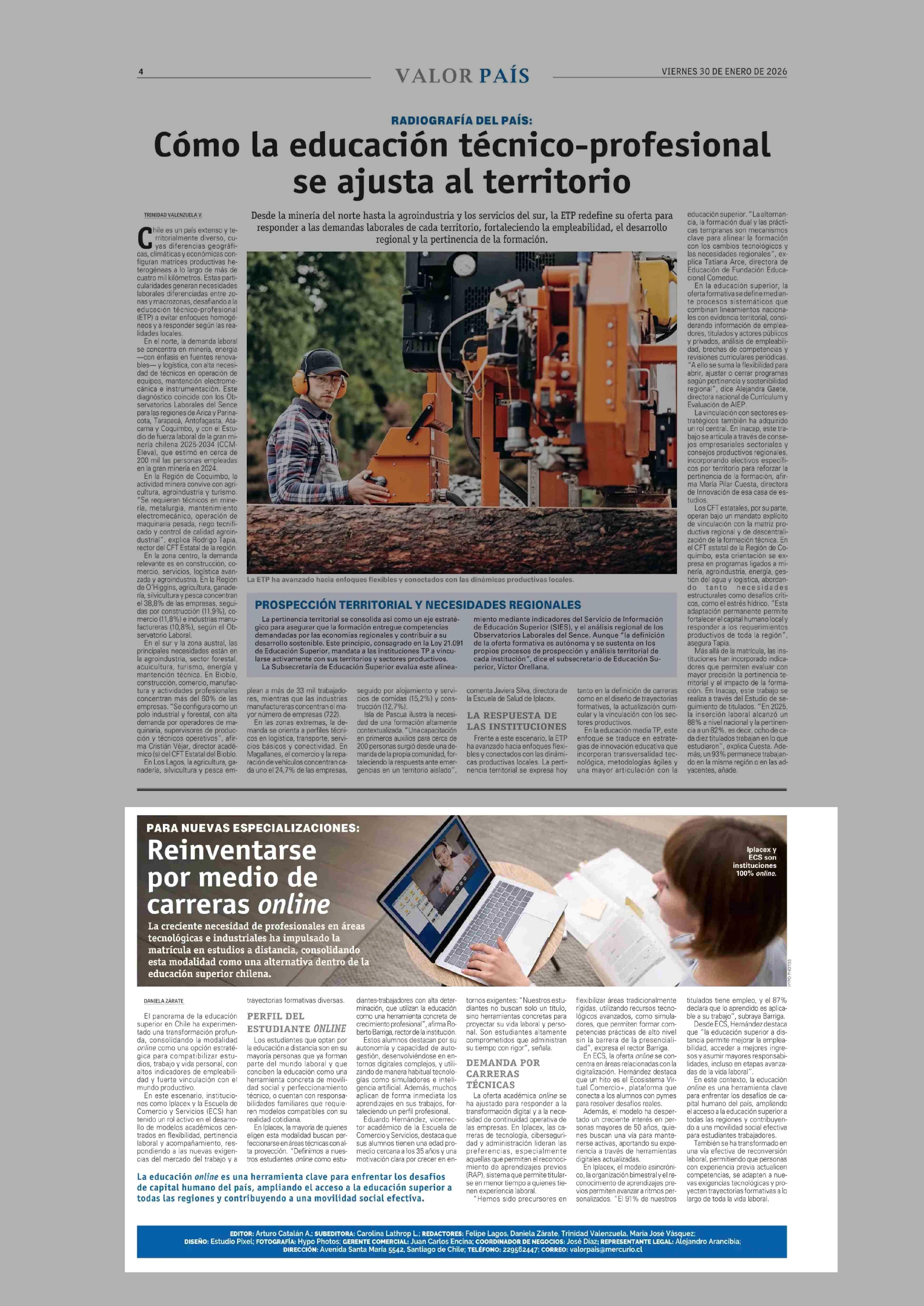 Reinventarse por medio de carreras online 30-01-2026 El Mercurio |