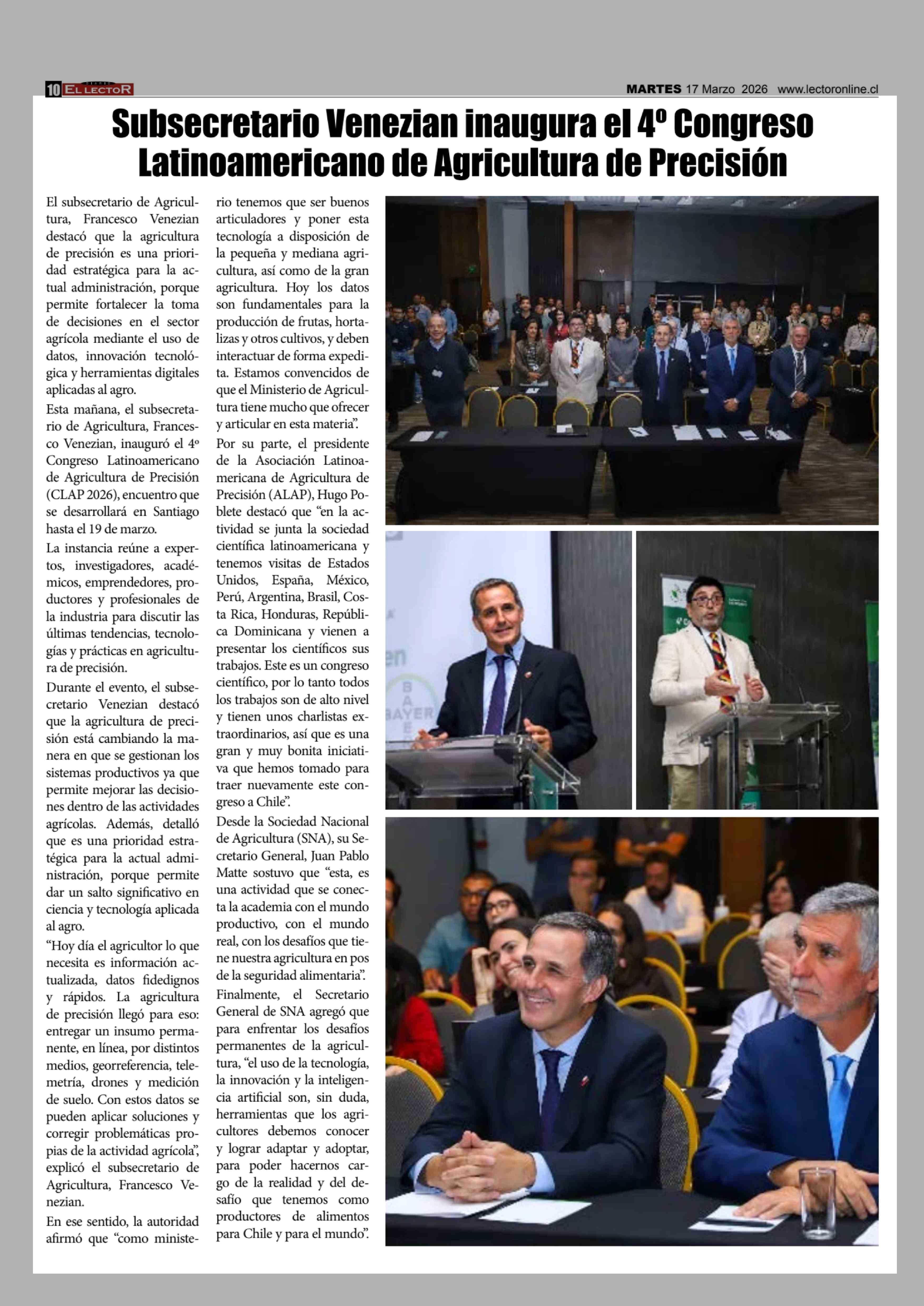 Título: Subsecretario Venezian inaugura el 4º Congreso Latinoamericano de Agricultura de Precisión