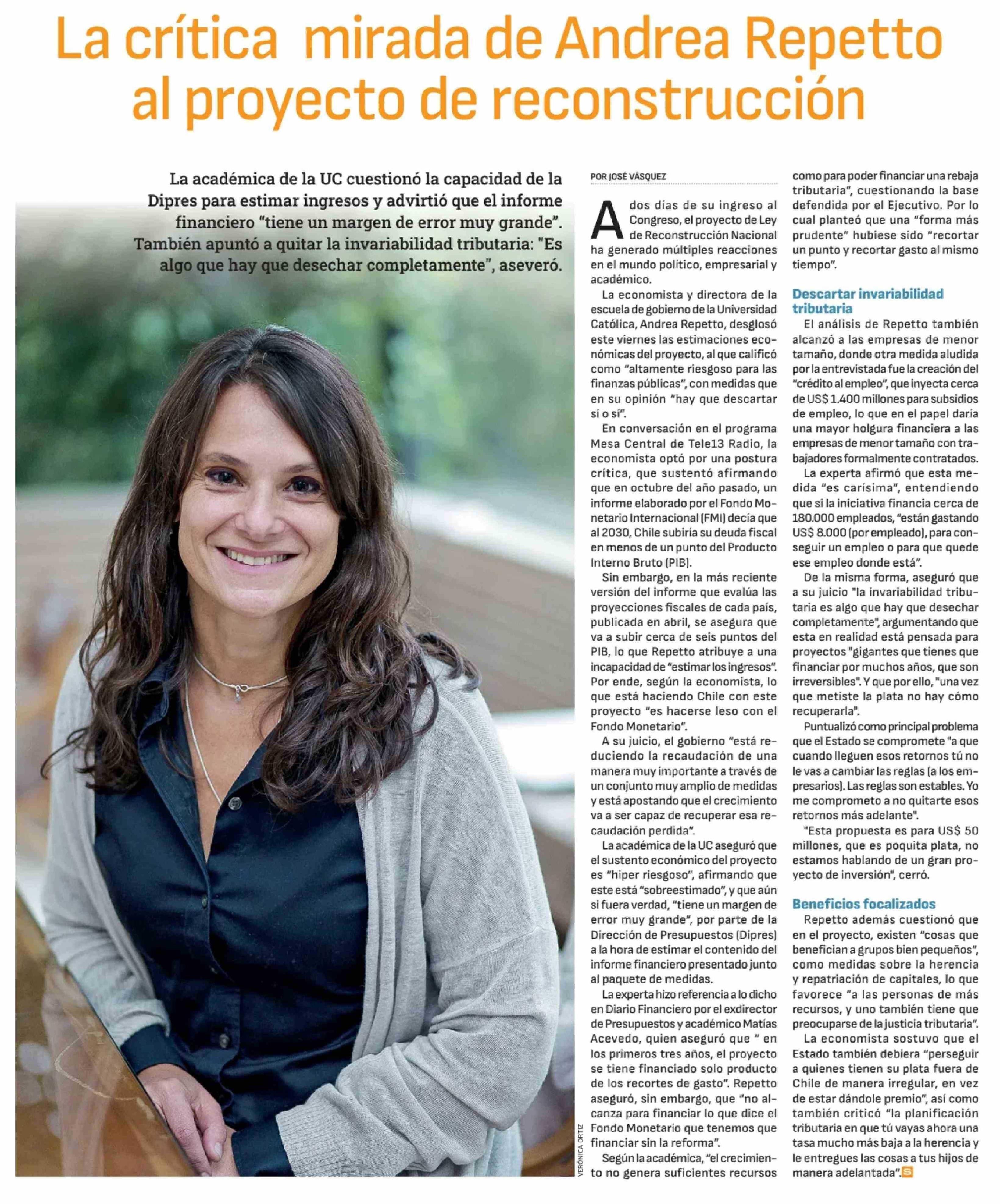 Título: La crítica mirada de Andrea Repetto al proyecto de reconstrucción