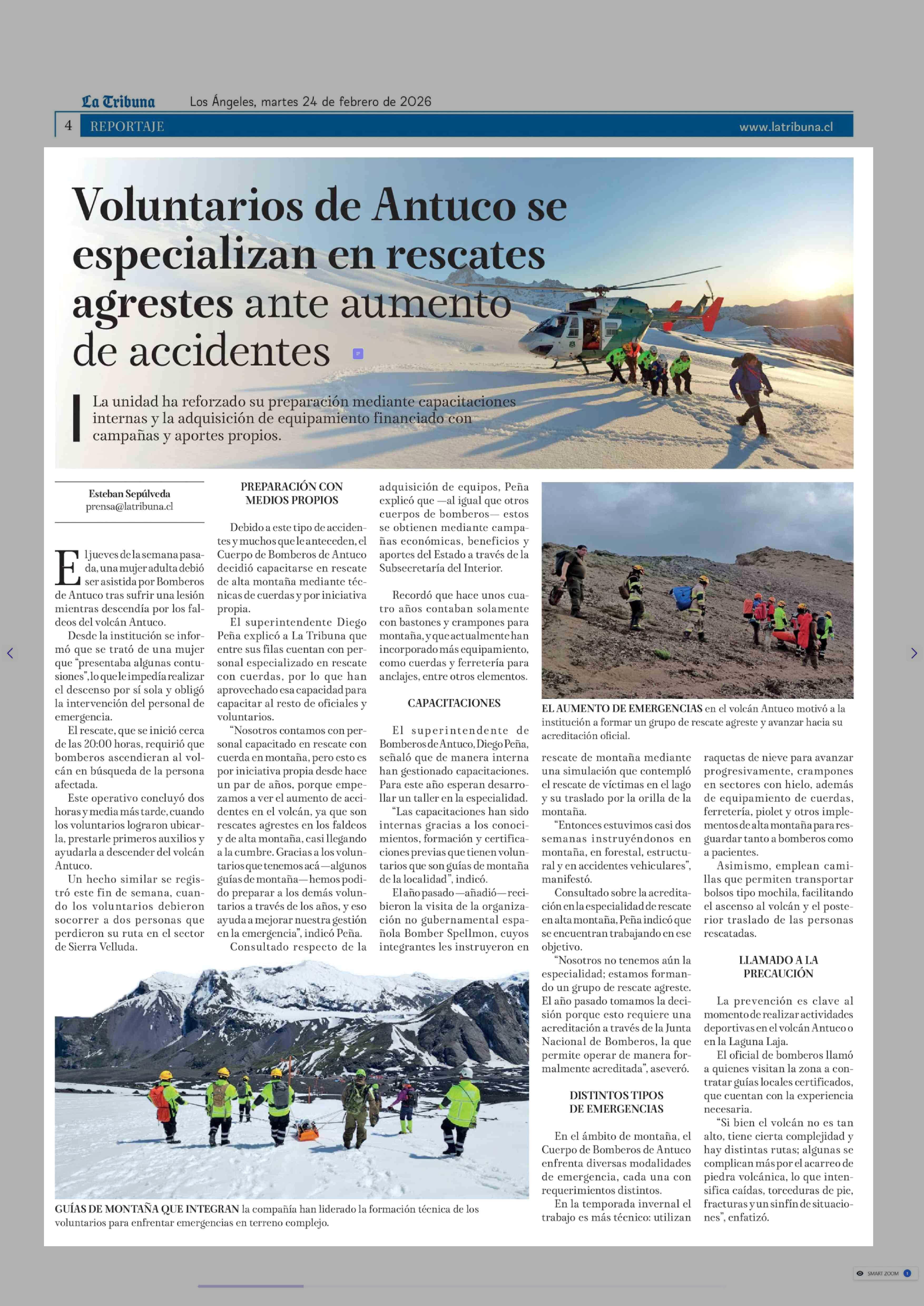 Voluntarios de Antuco se especializan en rescates agrestes ante aumento de accidentes 24-02-2026 La Tribuna |