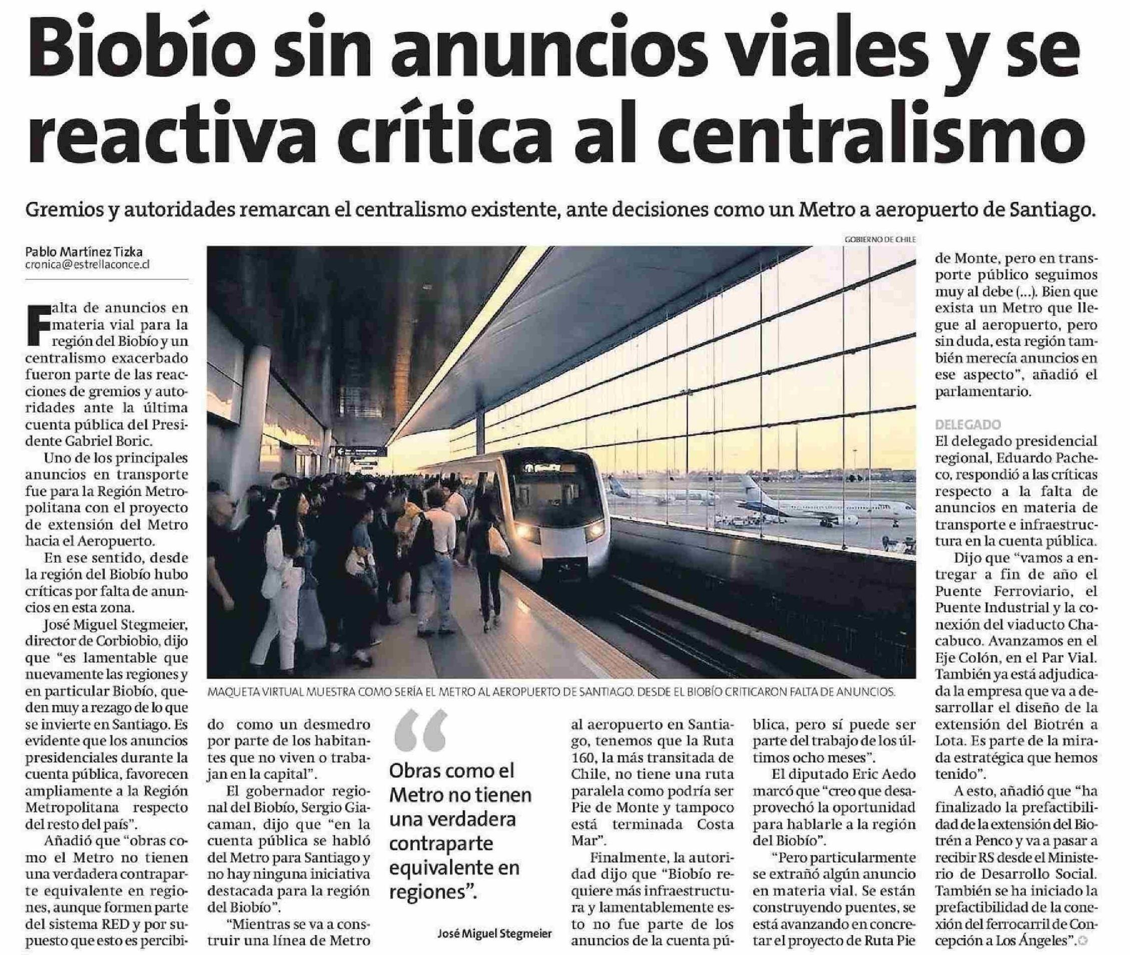Biobío sin anuncios viales y se reactiva crítica al centralismo 04-06-2025 La Estrella de Concepción |
