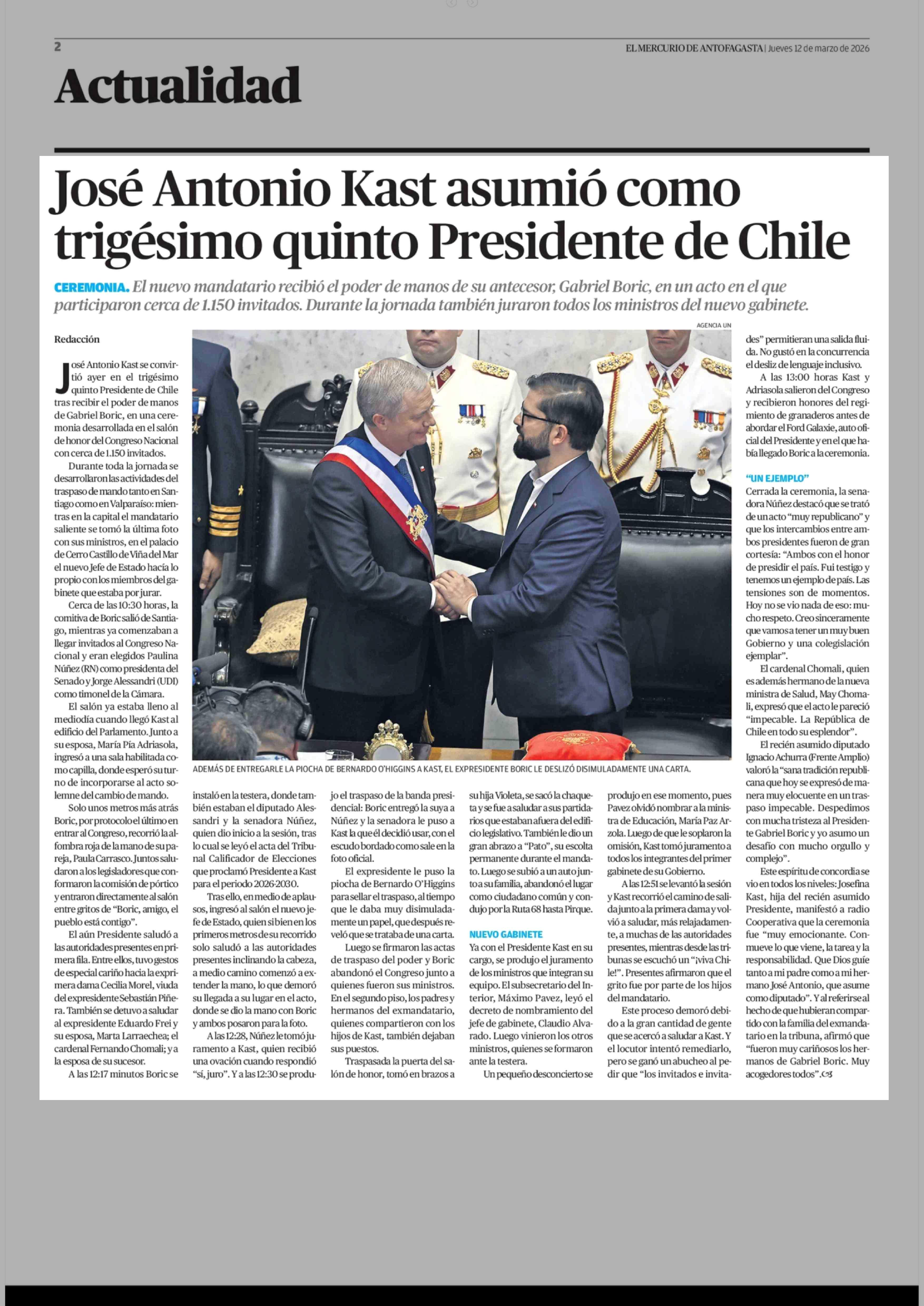 Título: José Antonio Kast asumió como trigésimo quinto Presidente de Chile