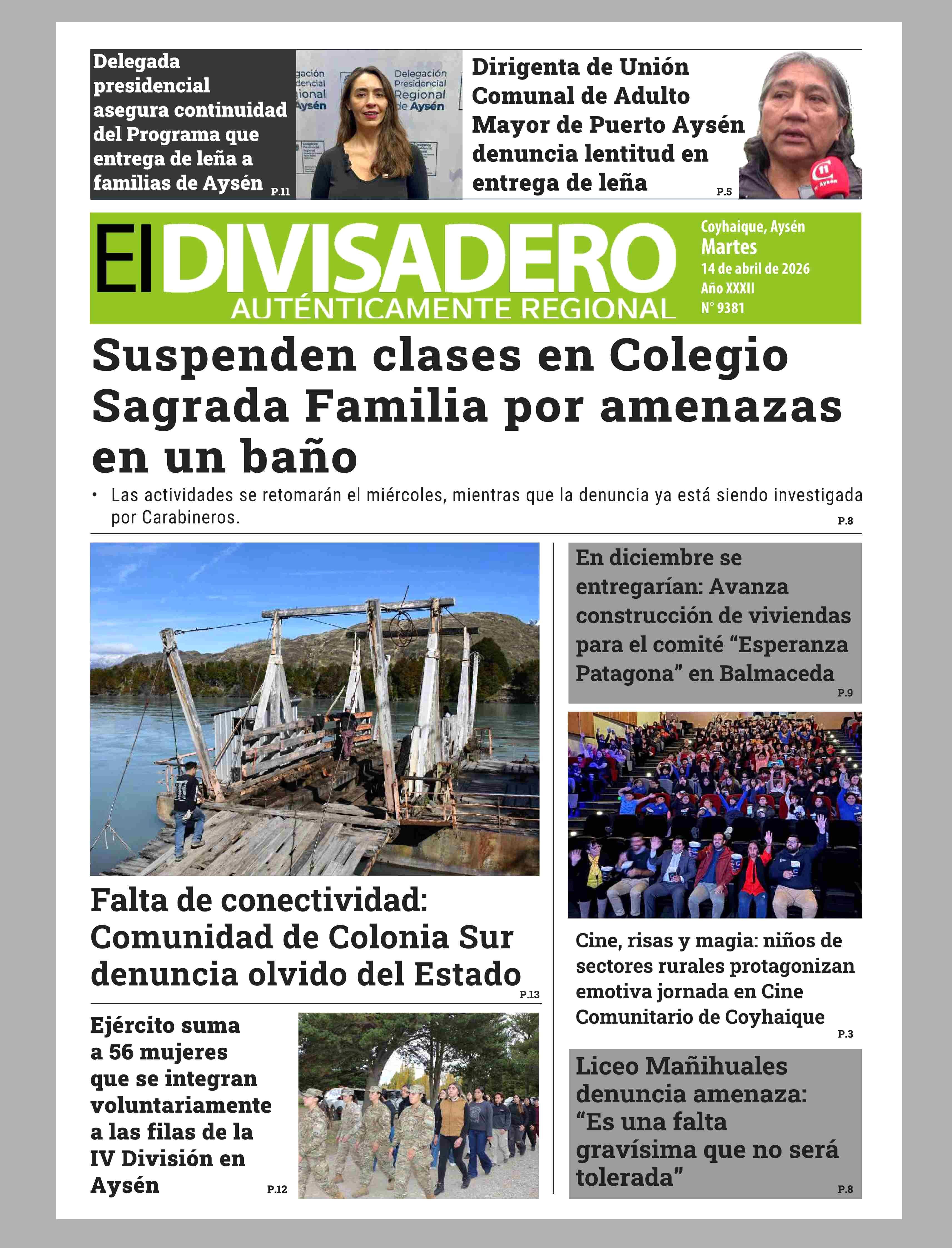 Fecha: 14-04-2026 Sector: Portada Región: Región Aysén del General Carlos Ibáñez del Campo