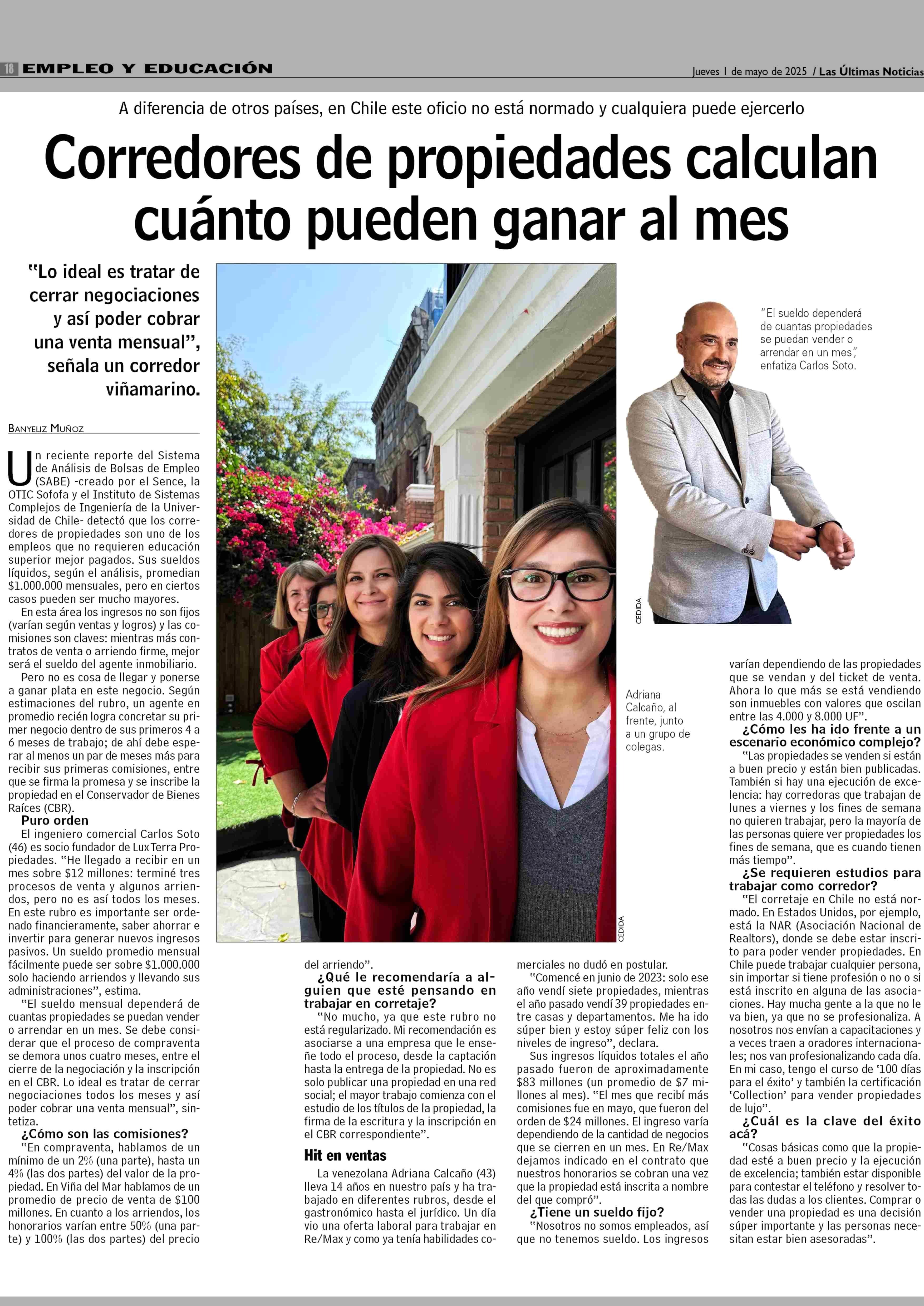 Corredores de propiedades calculan cuanto pueden ganar al mes 01-05-2025 Las Últimas Noticias |
