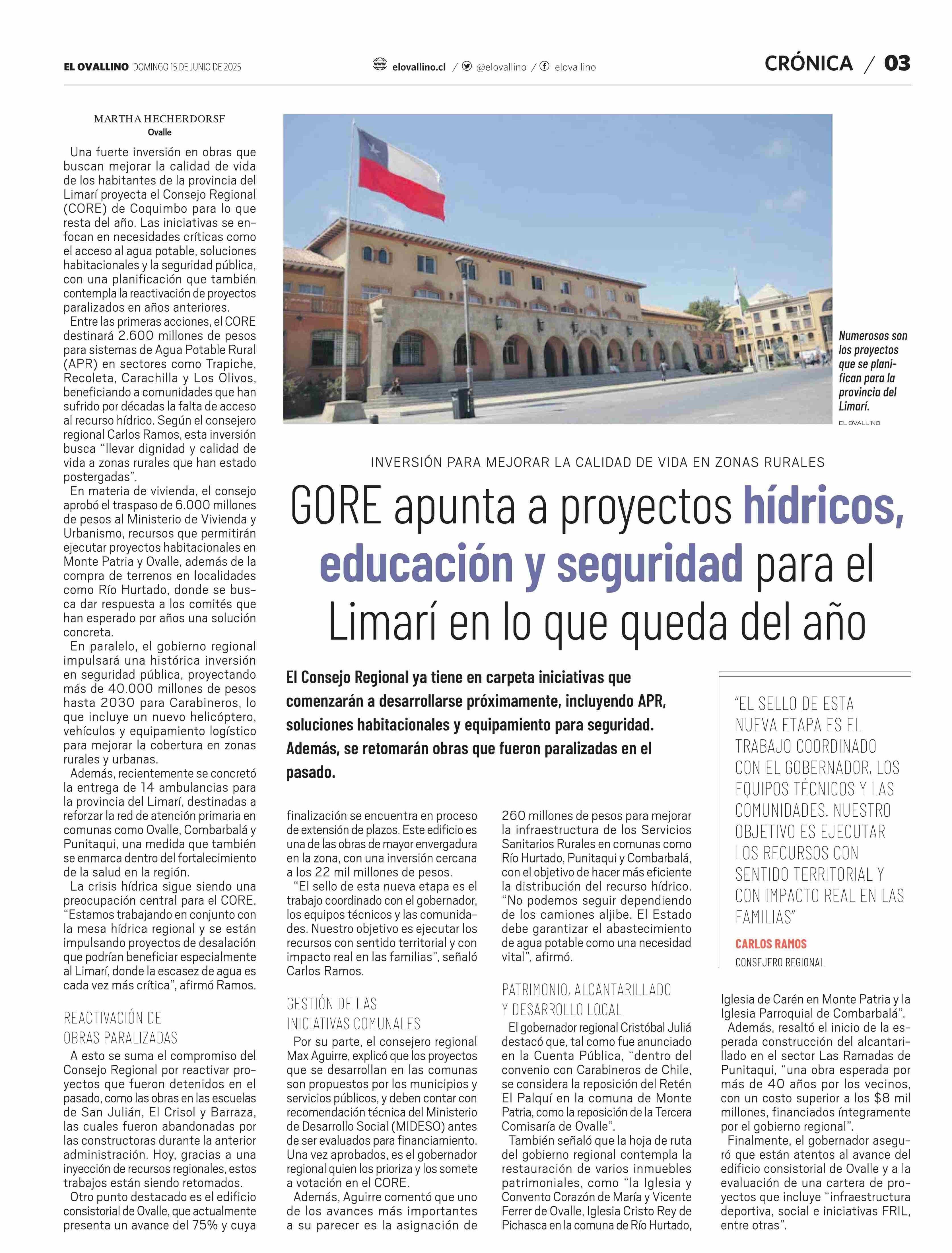 GORE apunta a proyectos hídricos, educación y seguridad para el Limarí en lo que queda del año 15-06-2025 El Ovallino |