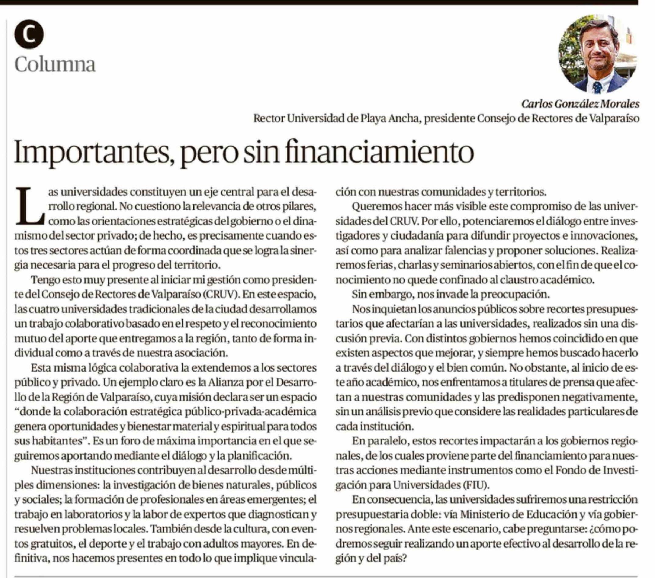 Columnas de Opinión: Importantes, pero sin financiamiento