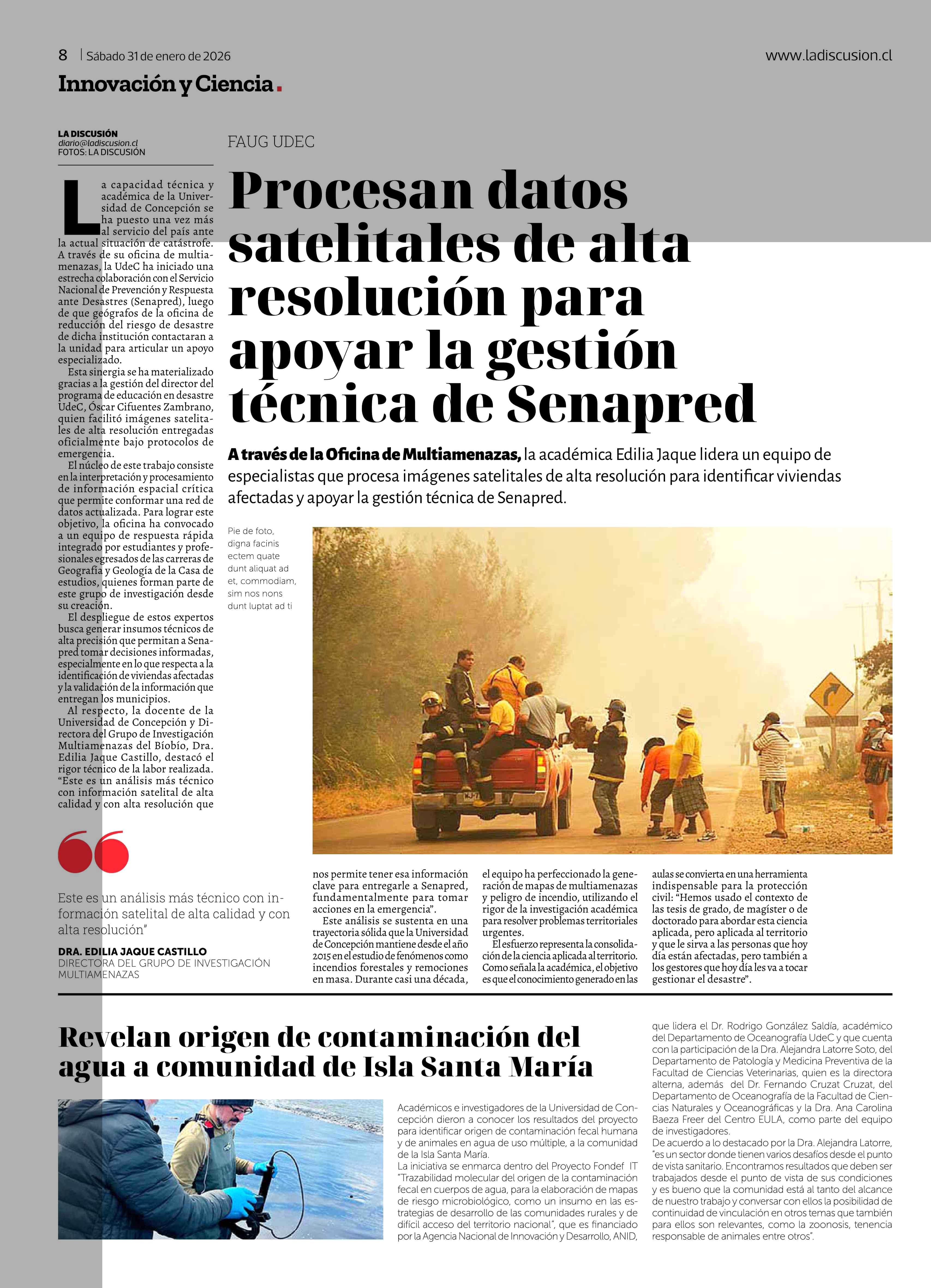 Título: Procesan datos satelitales de alta resolución para apoyar la gestión técnica de Senapred
