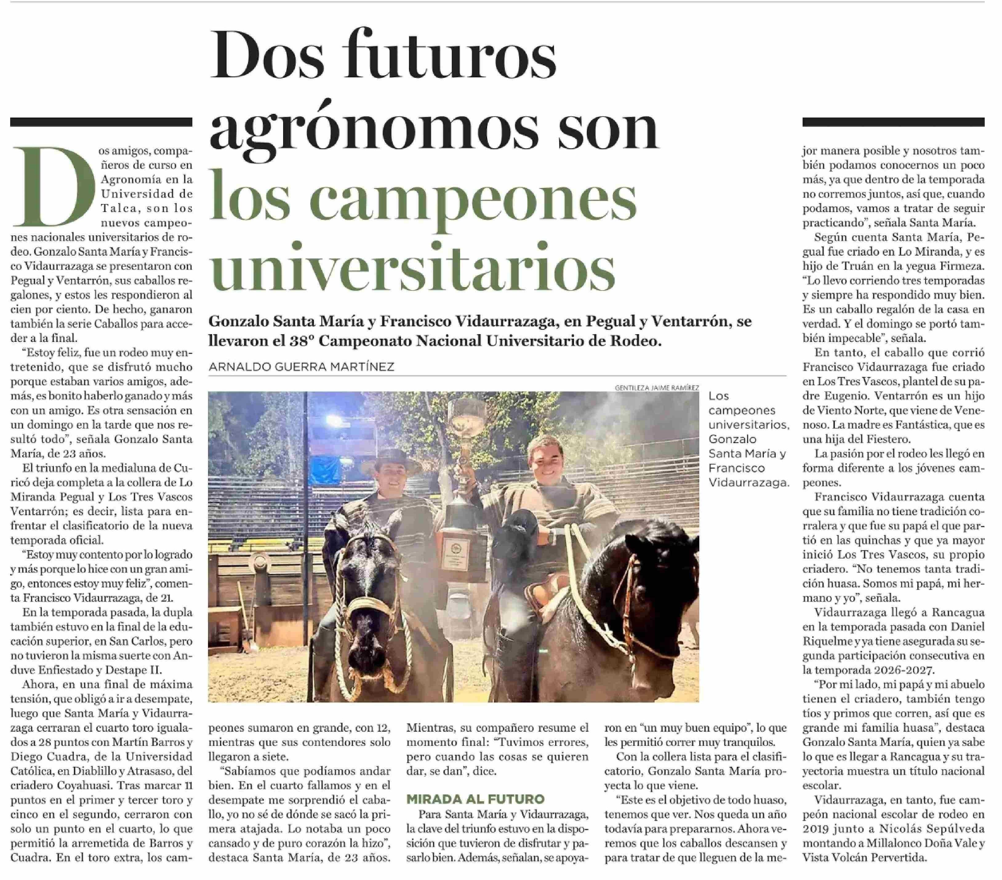 Dos futuros agrónomos son los campeones universitarios 27-04-2026 El Mercurio |