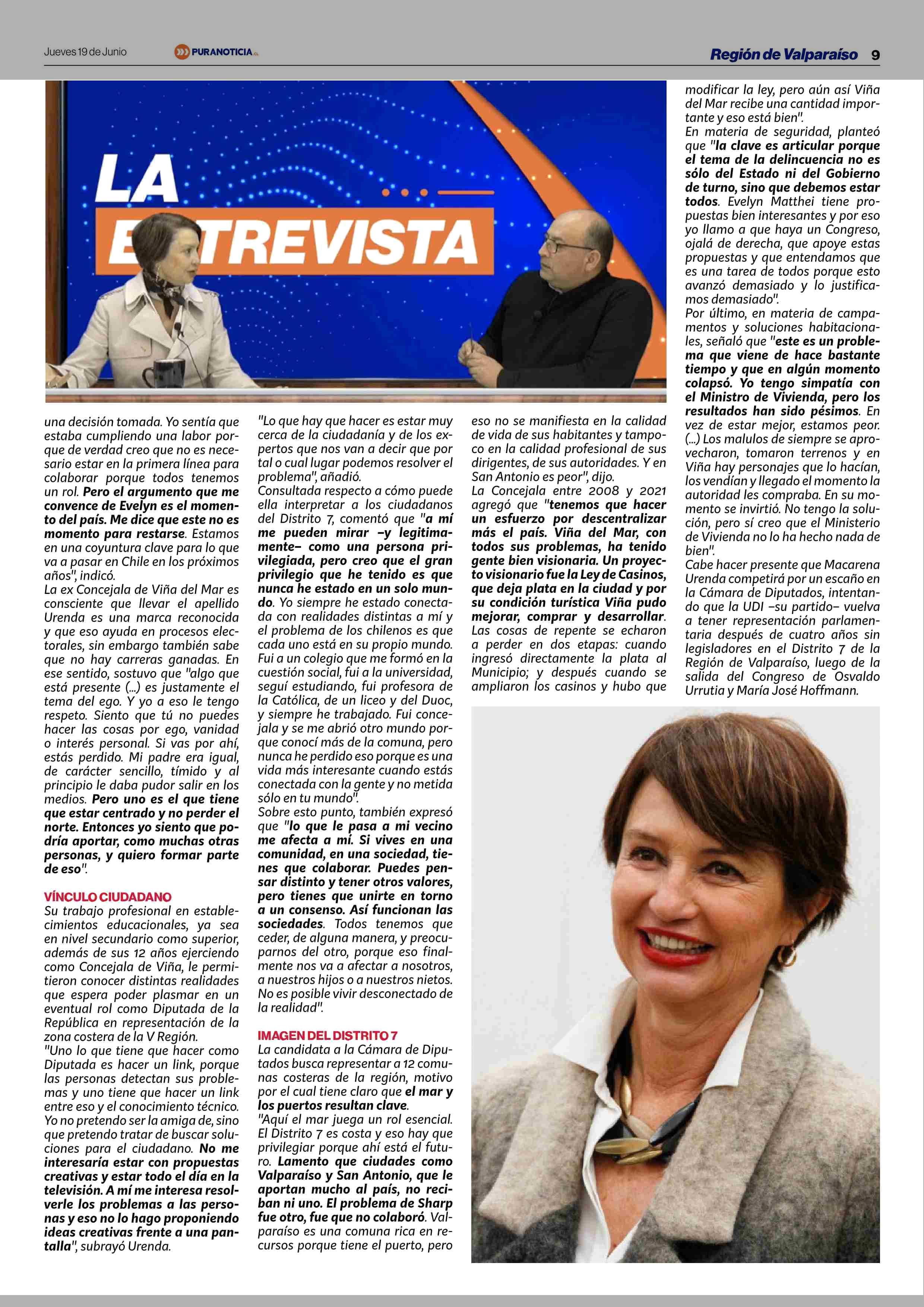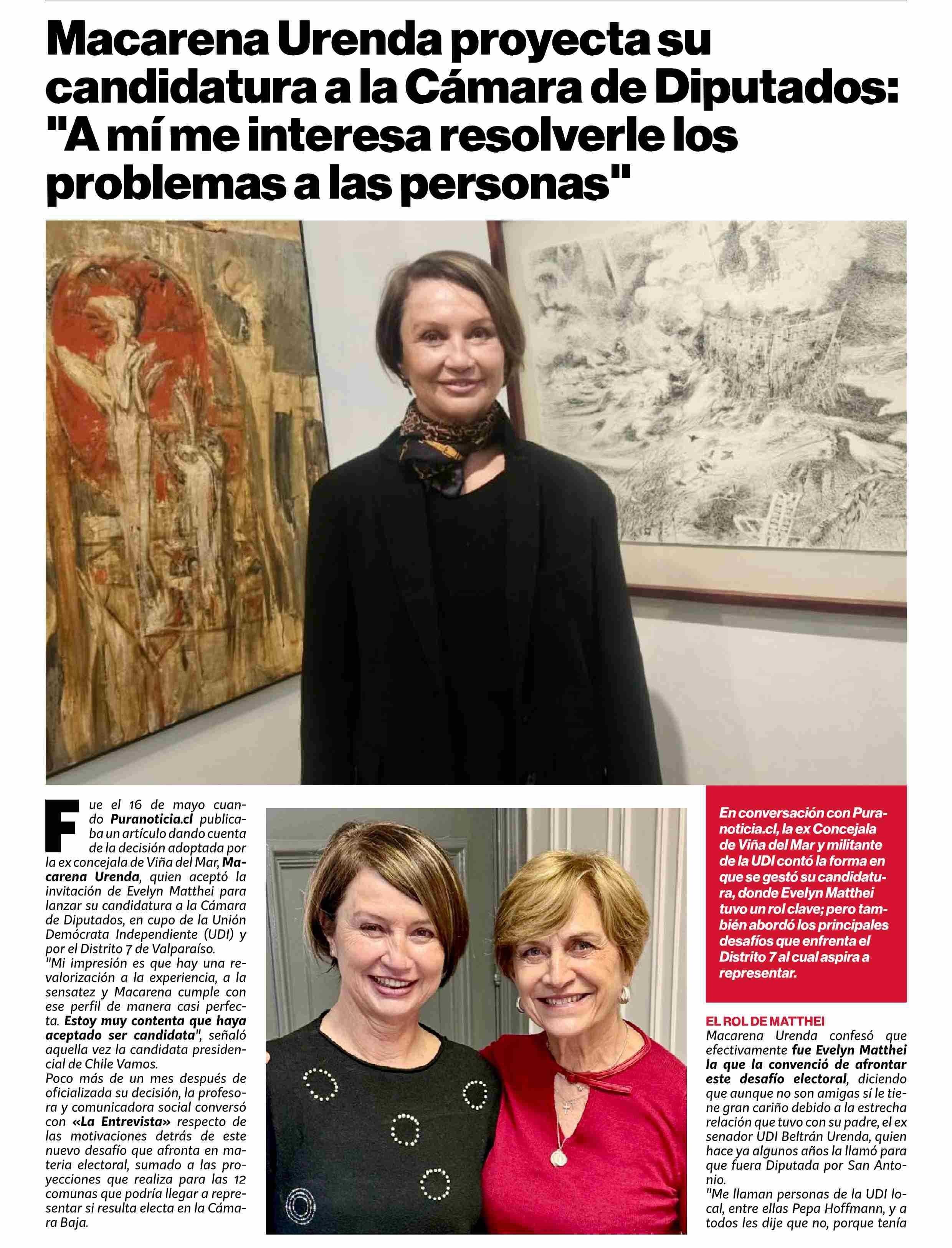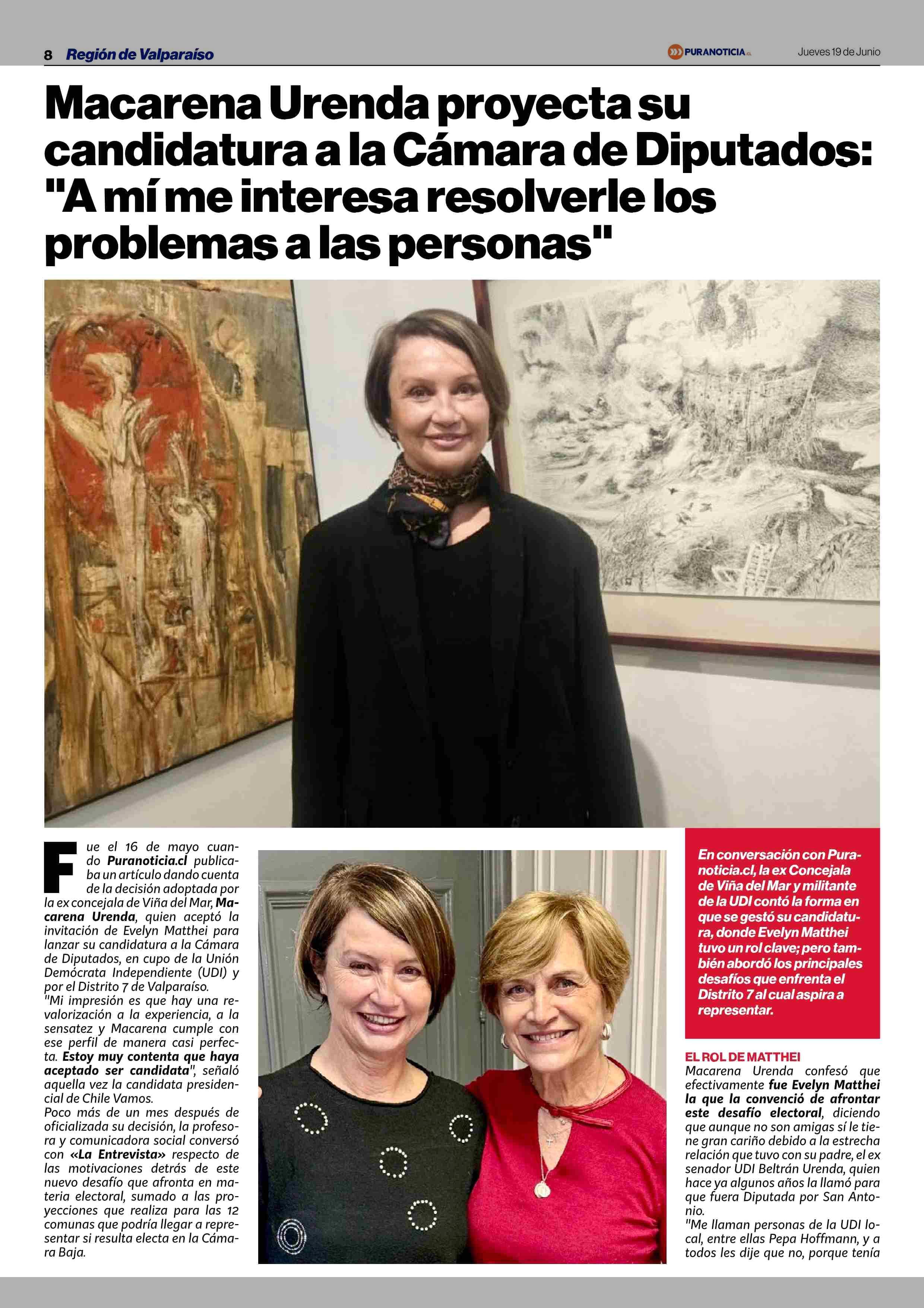 Macarena Urenda proyecta su candidatura a la Cámara de Diputados: "A míme interesa resolverle los problemas a las personas” 19-06-2025 Puranoticia.cl |