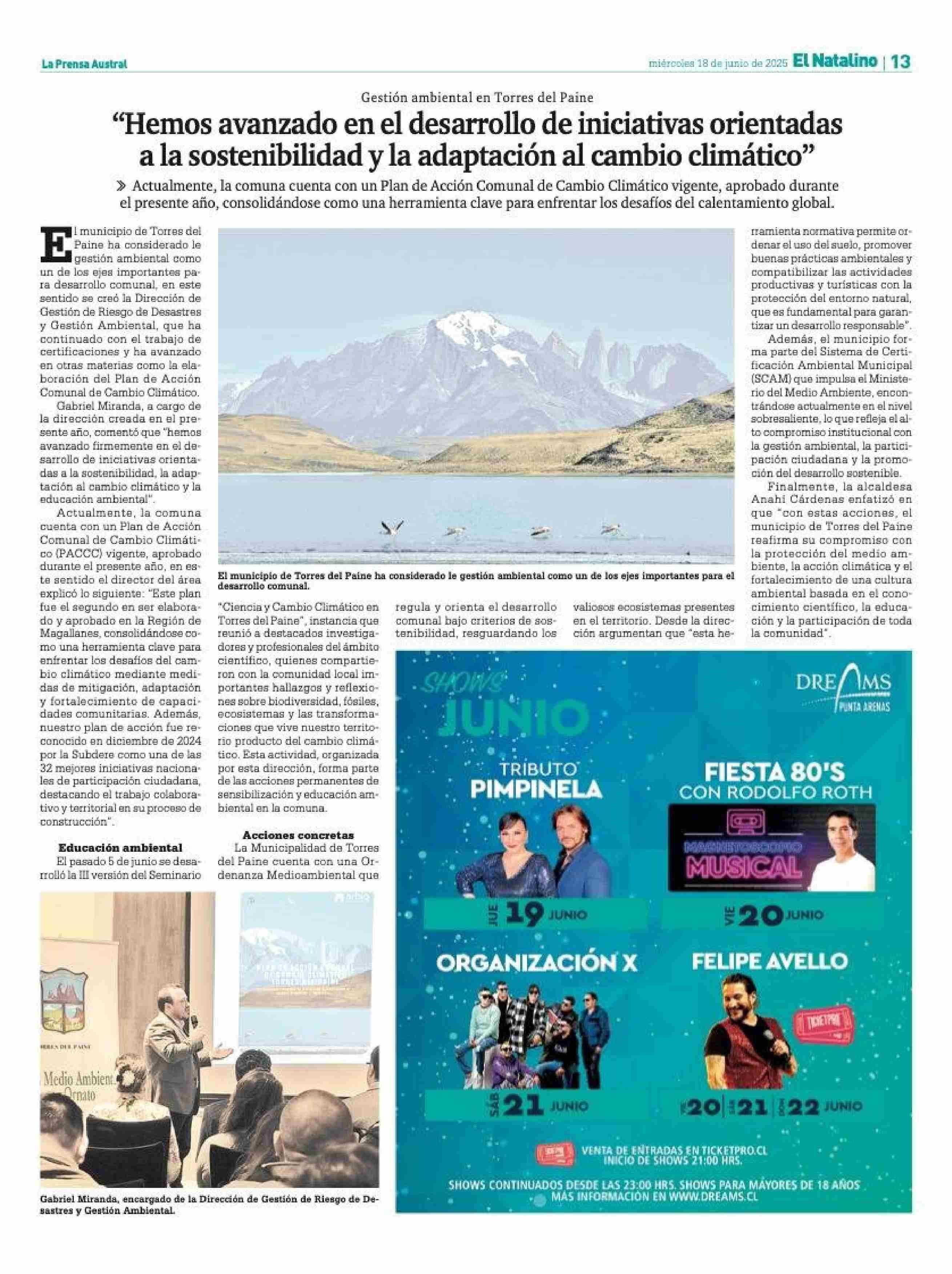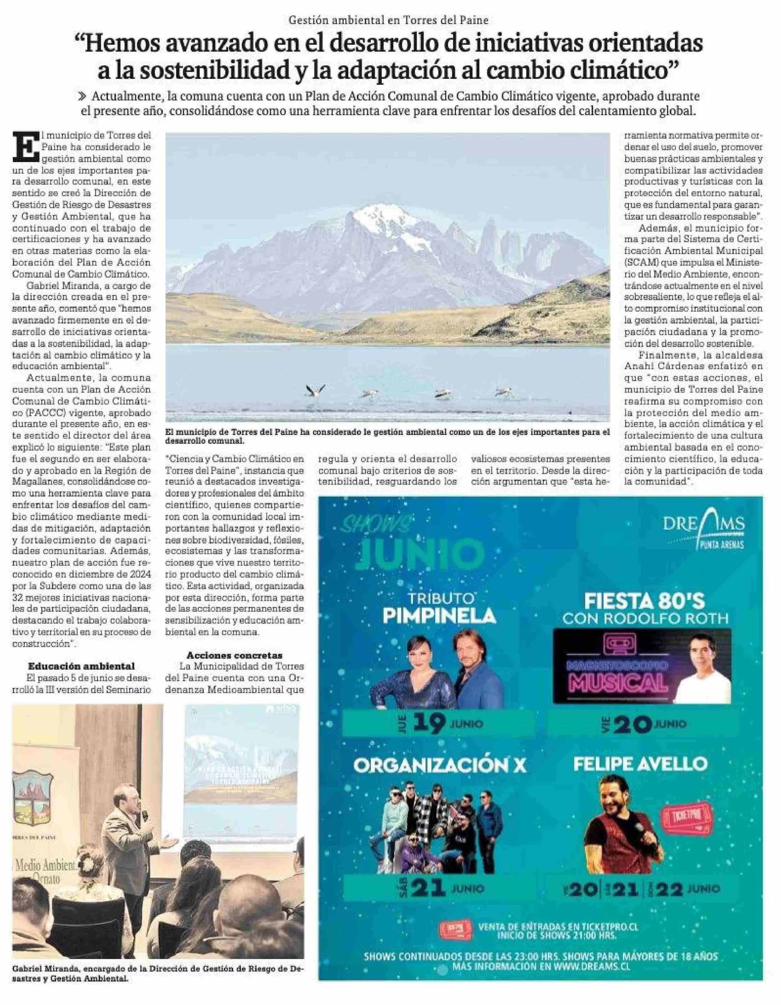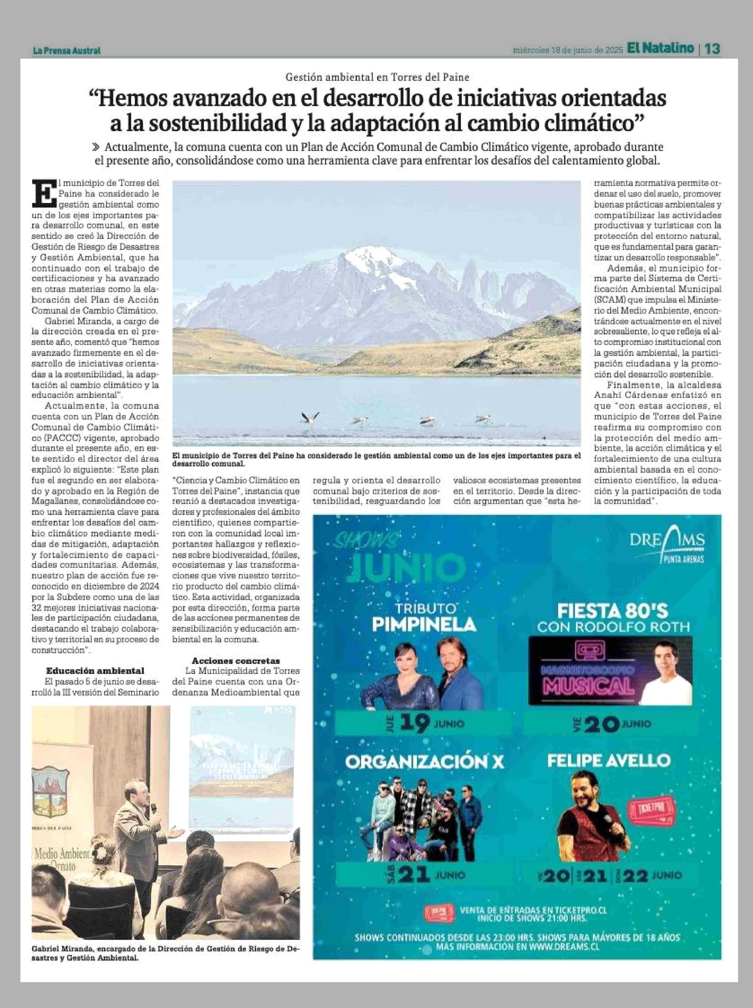 "Hemos avanzado en el desarrollo de iniciativas orientadas a la sostenibilidad y la adaptación al cambio climático" 18-06-2025 La Prensa Austral |