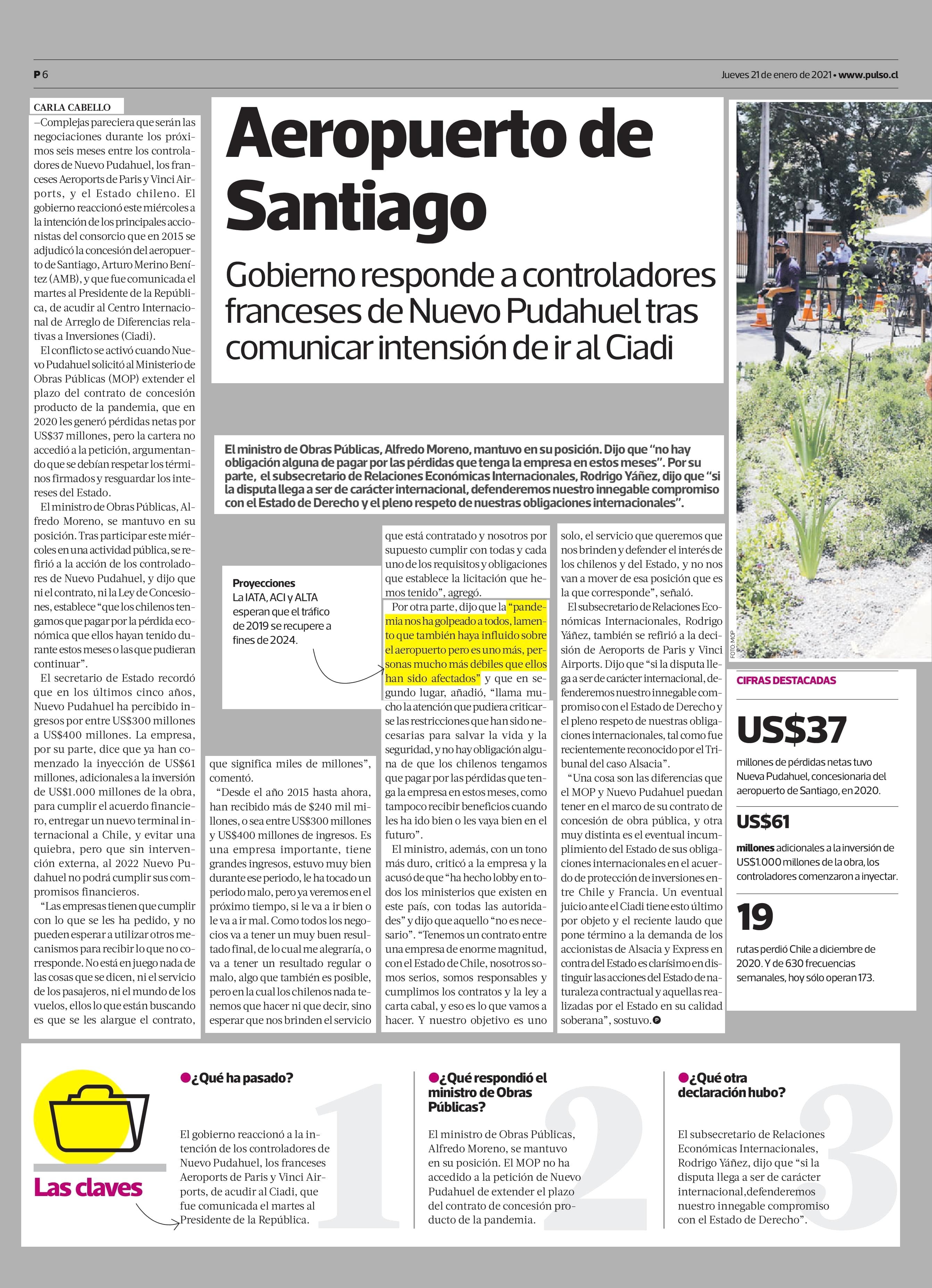 Título: Aeropuerto de Santiago Gobierno responde a controladores franceses de Nuevo Pudahuel tras comunicar intensión de ir al Ciadi